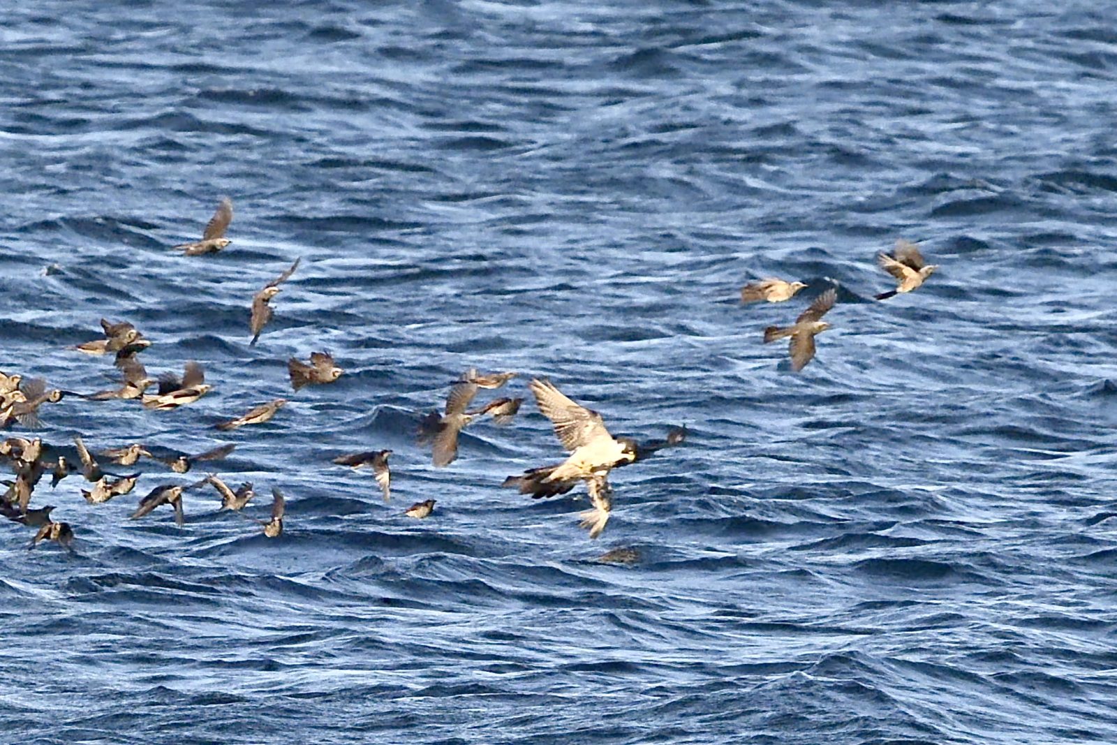 ■ その群れを狙うハヤブサ――緊迫の攻防