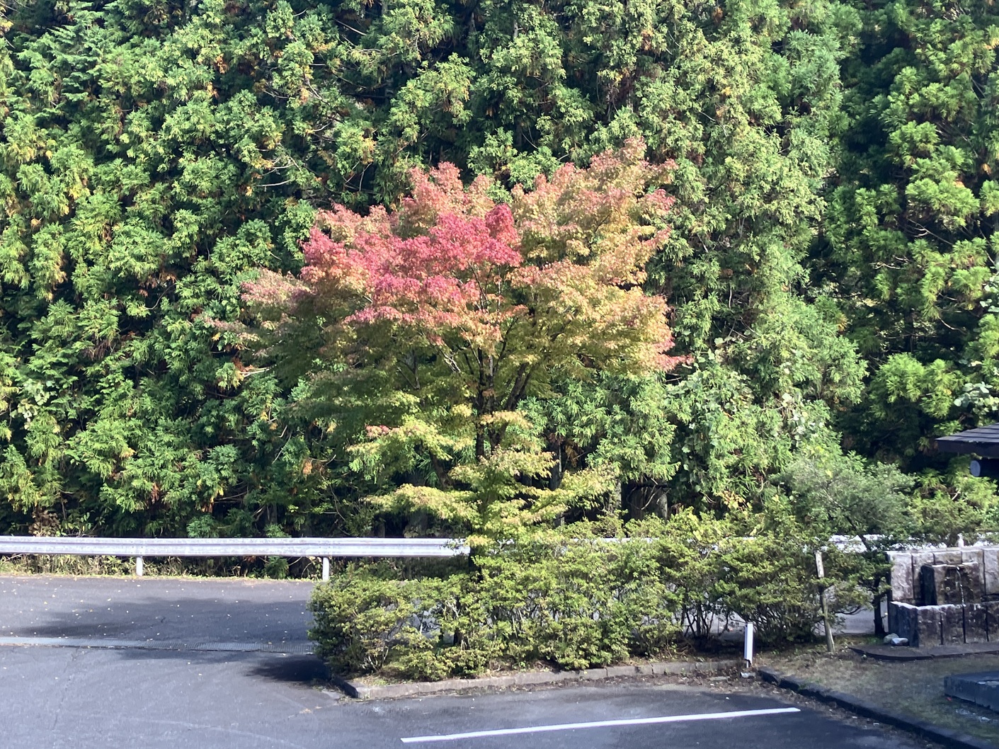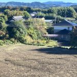 物件の周りの景色はまだ初秋で木々も緑の中に薄っすらと紅葉の始まりを見せていまが今年は気候が暑かったので紅葉が少し遅れています。緑の木々が様々な色になるのは11月初旬から11月中旬頃になるかと思われます。物件は手前にハウスメーカの二階建ての家、奥に古民家住宅の2棟です。青空の奥に山々が連なりそして紅葉になればこの家も最高の景観になることは間違いありません。民泊を営みたい人には最高ではないでしょうか。