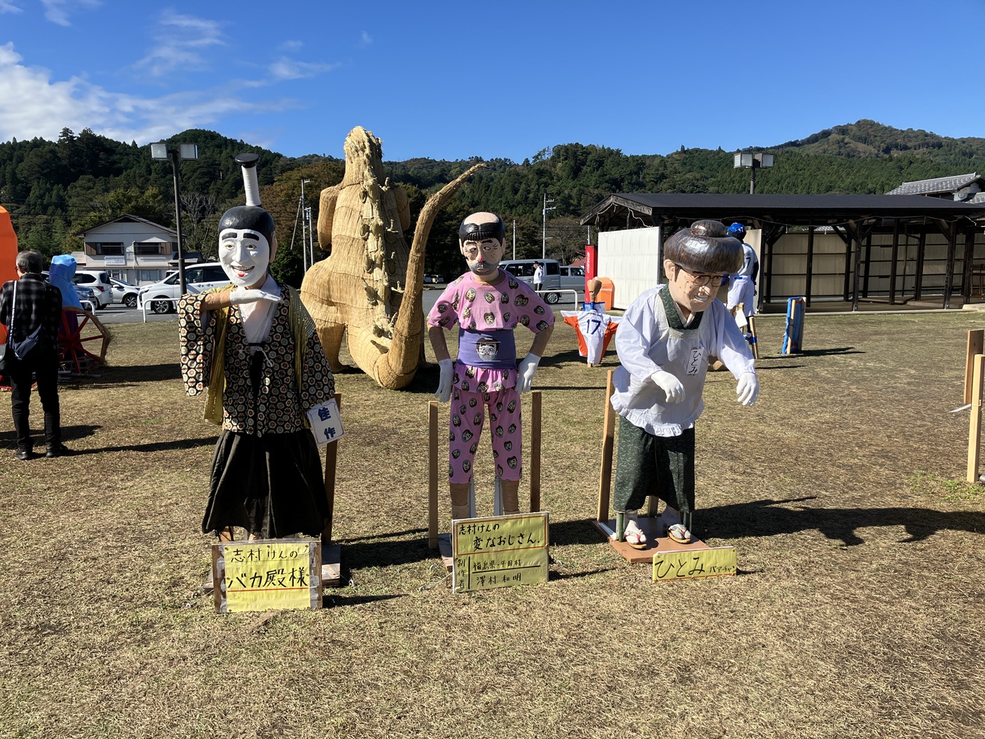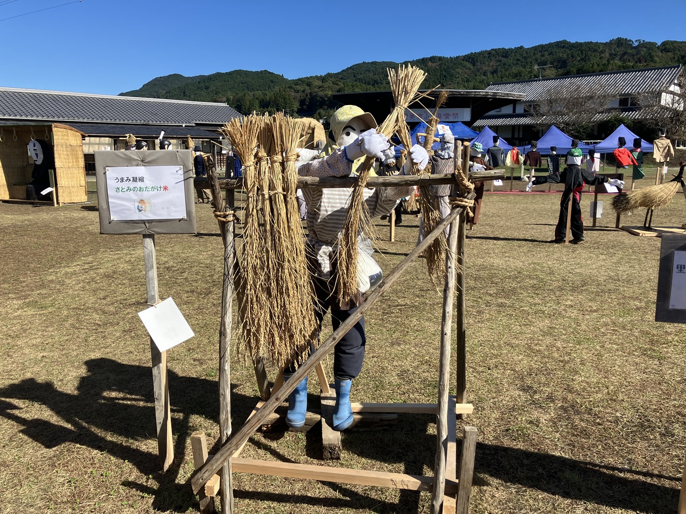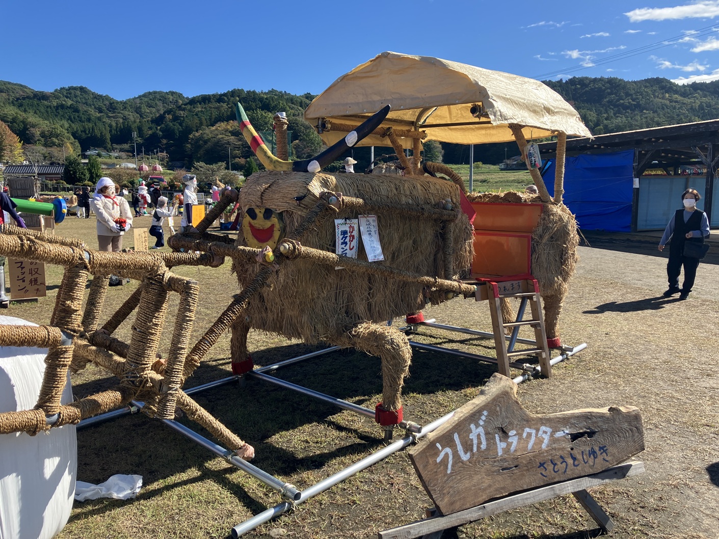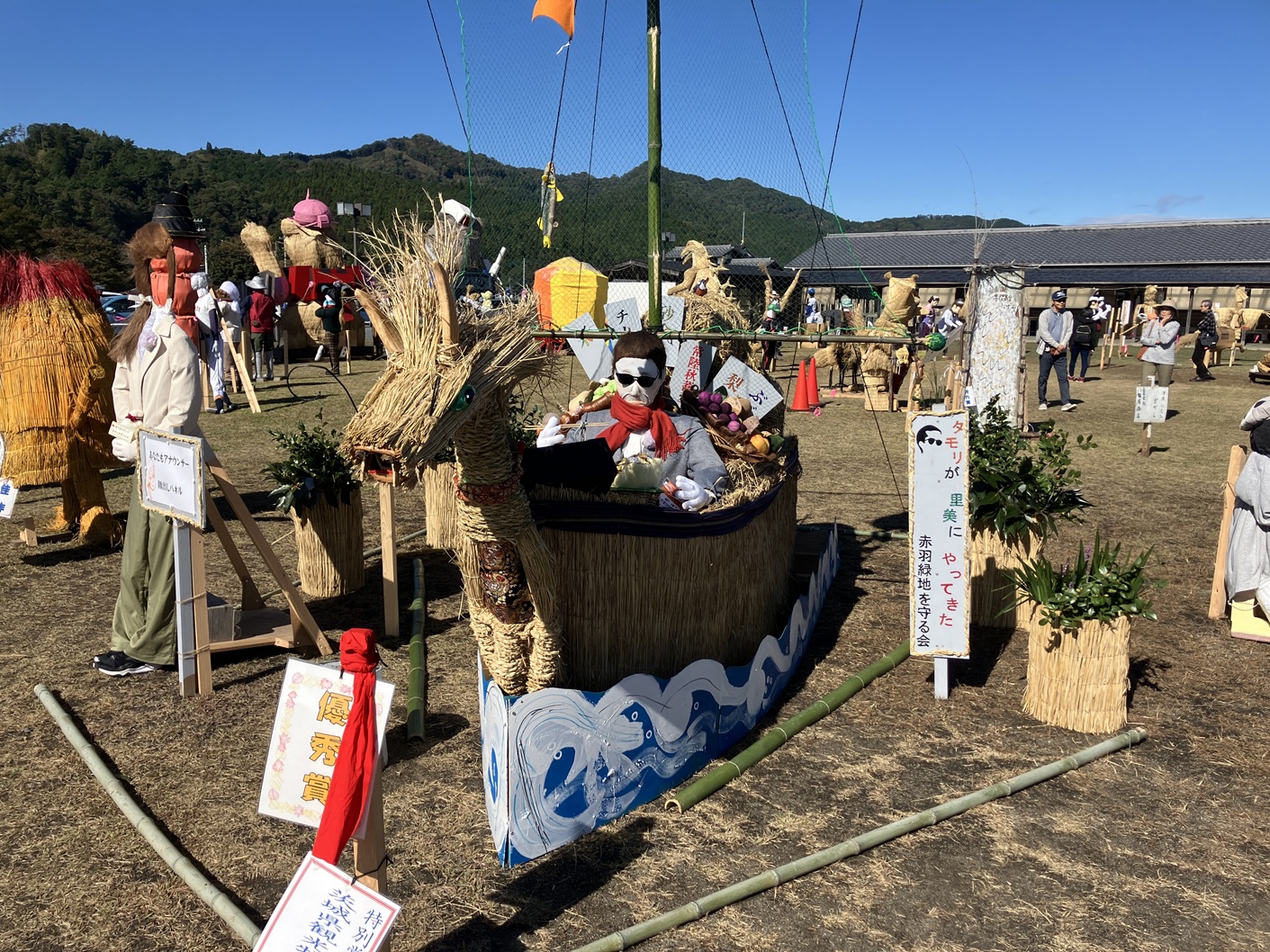 毎年行われています里美かかし祭です。私も四年通ってブログに掲載してます。毎年流行りに合わせて、個性豊かなかかしがたくさん並ぶイベントです。手作りだからこそ出せる味わいのあるかかしたちと藁の香りに包まれた会場を楽しんでみてはいかがでしょうか。