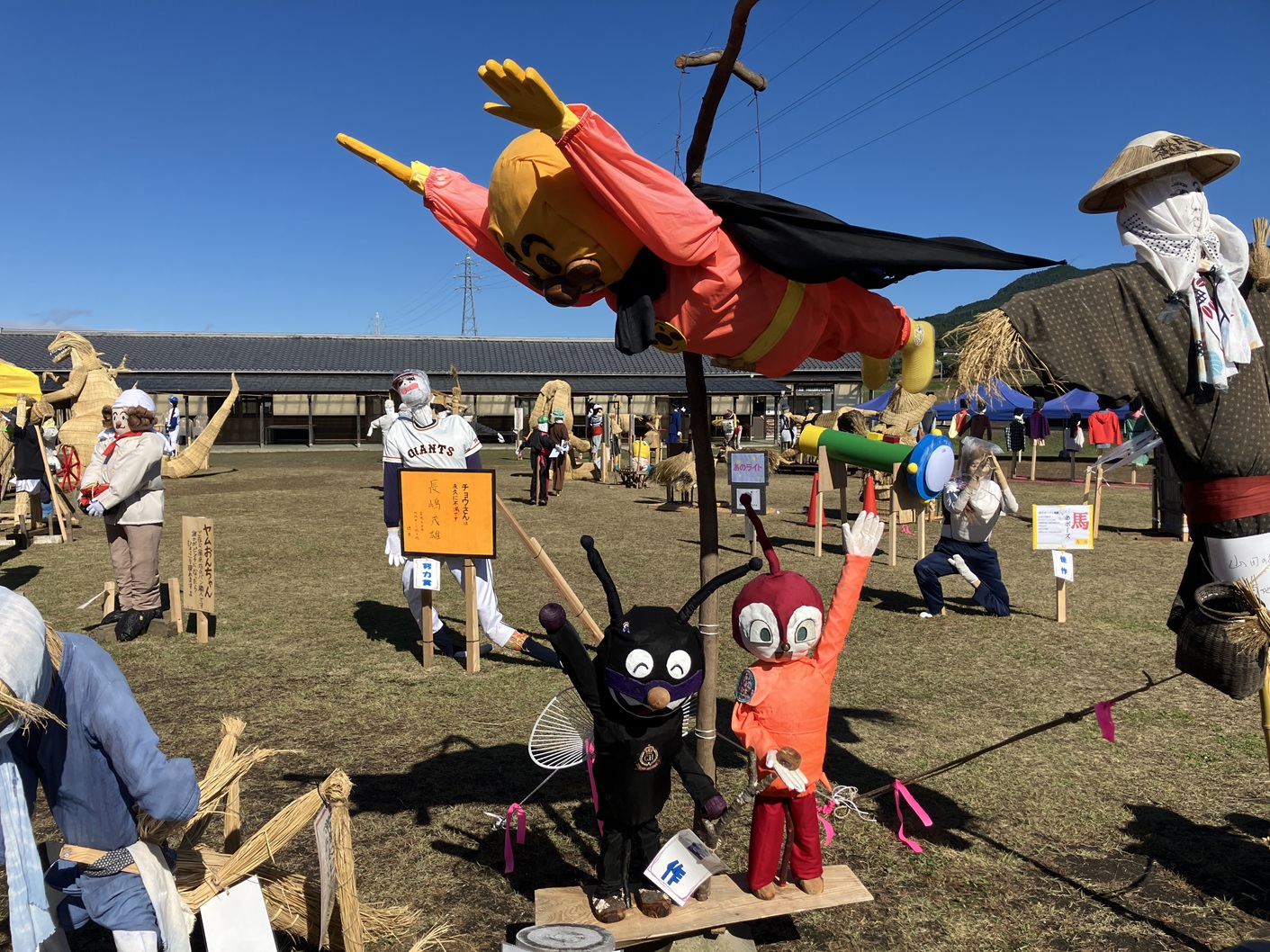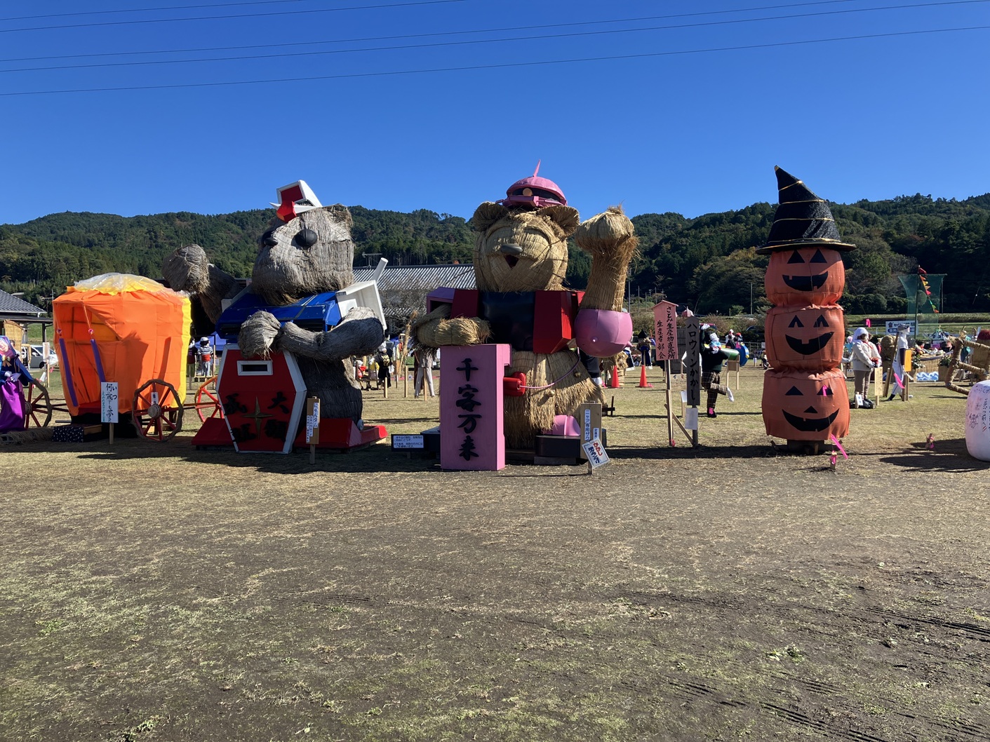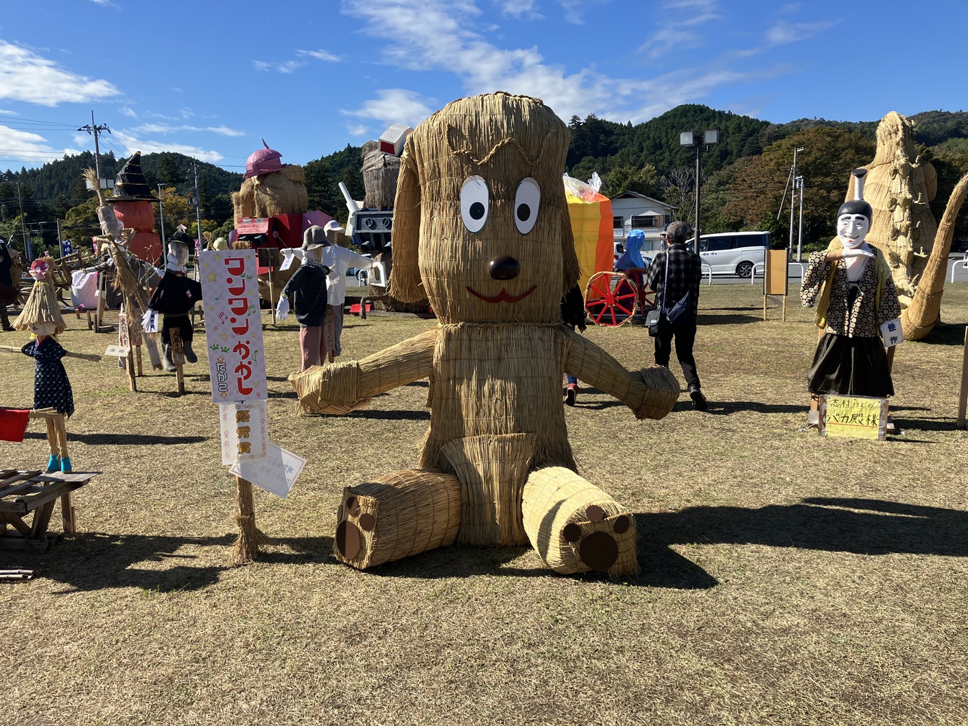 毎年行われています里美かかし祭です。私も四年通ってブログに掲載してます。毎年流行りに合わせて、個性豊かなかかしがたくさん並ぶイベントです。手作りだからこそ出せる味わいのあるかかしたちと藁の香りに包まれた会場を楽しんでみてはいかがでしょうか。