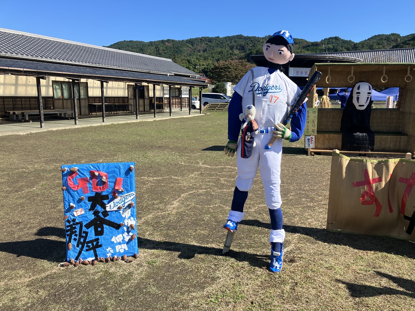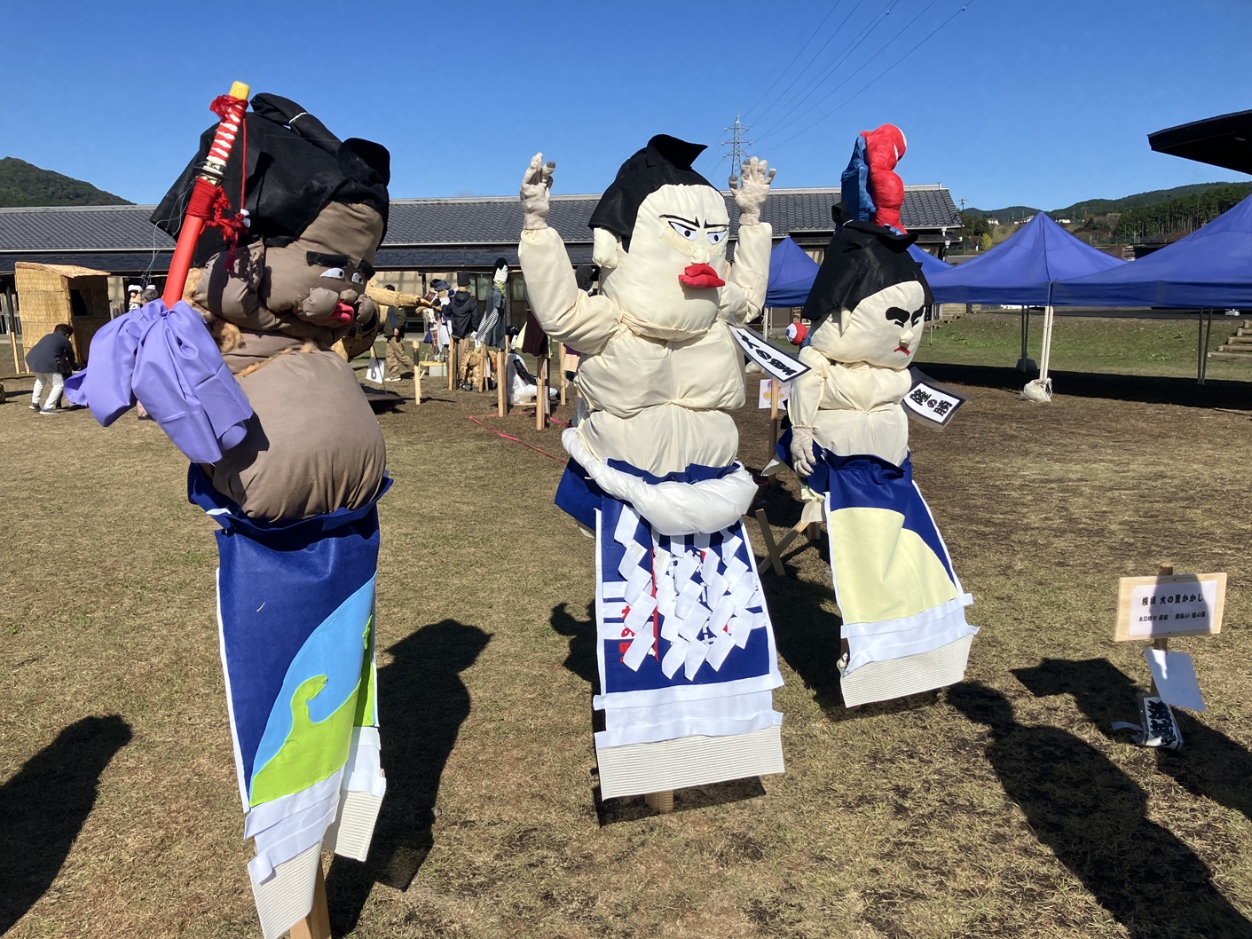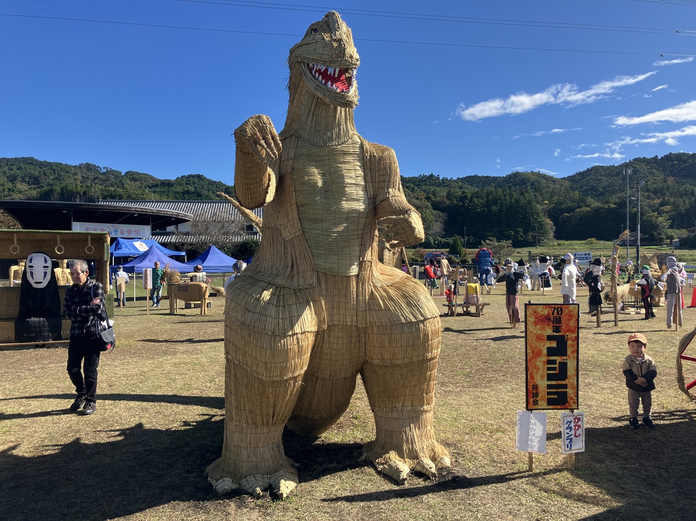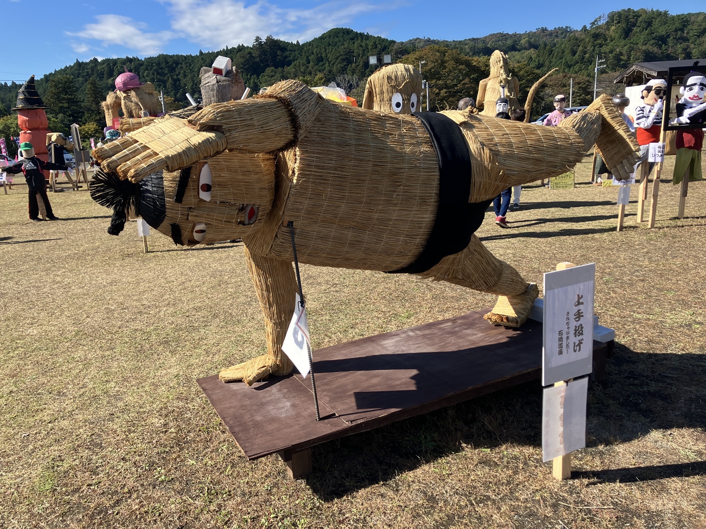 毎年行われています里美かかし祭です。私も四年通ってブログに掲載してます。毎年流行りに合わせて、個性豊かなかかしがたくさん並ぶイベントです。手作りだからこそ出せる味わいのあるかかしたちと藁の香りに包まれた会場を楽しんでみてはいかがでしょうか。