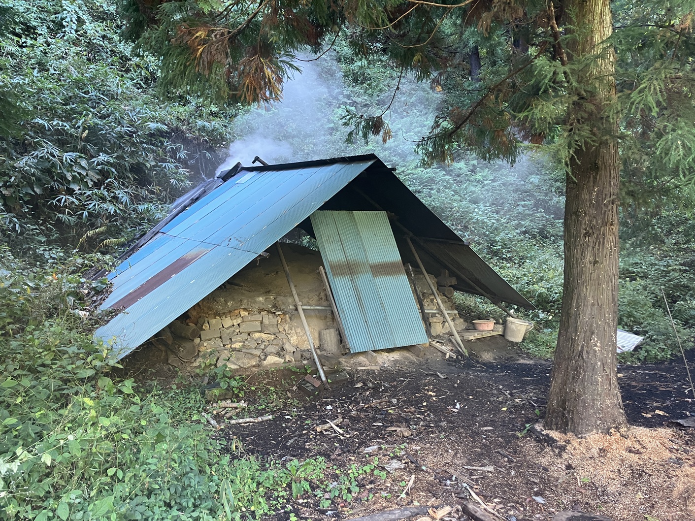 常陸太田市里美~高萩市461号線の途中に今では大変珍しい炭焼き小屋で炭を作っていました。楢ノ木で炭を作っているようです。