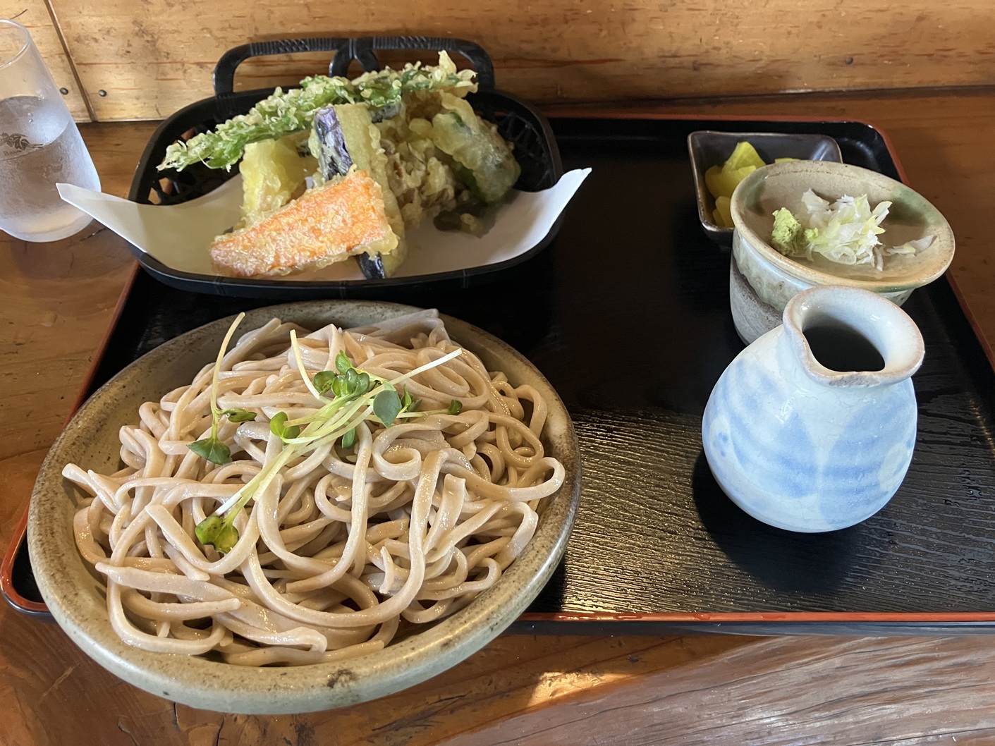 てんぷらの具の野菜も自分で作り収穫したものです。今日はオリジナルのリンゴのてんぷらが大変美味しく頂きました。具がたりなければ駐車場の前に畑がありそこでナス、ピーマン、サツマイモ、玉ねぎなど収穫に行きます。