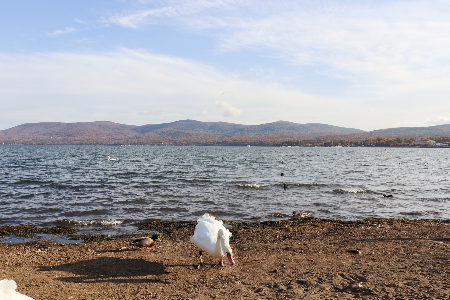 白鳥たちへの餌やりに思いがけずテンションが上がって長居してしまい、