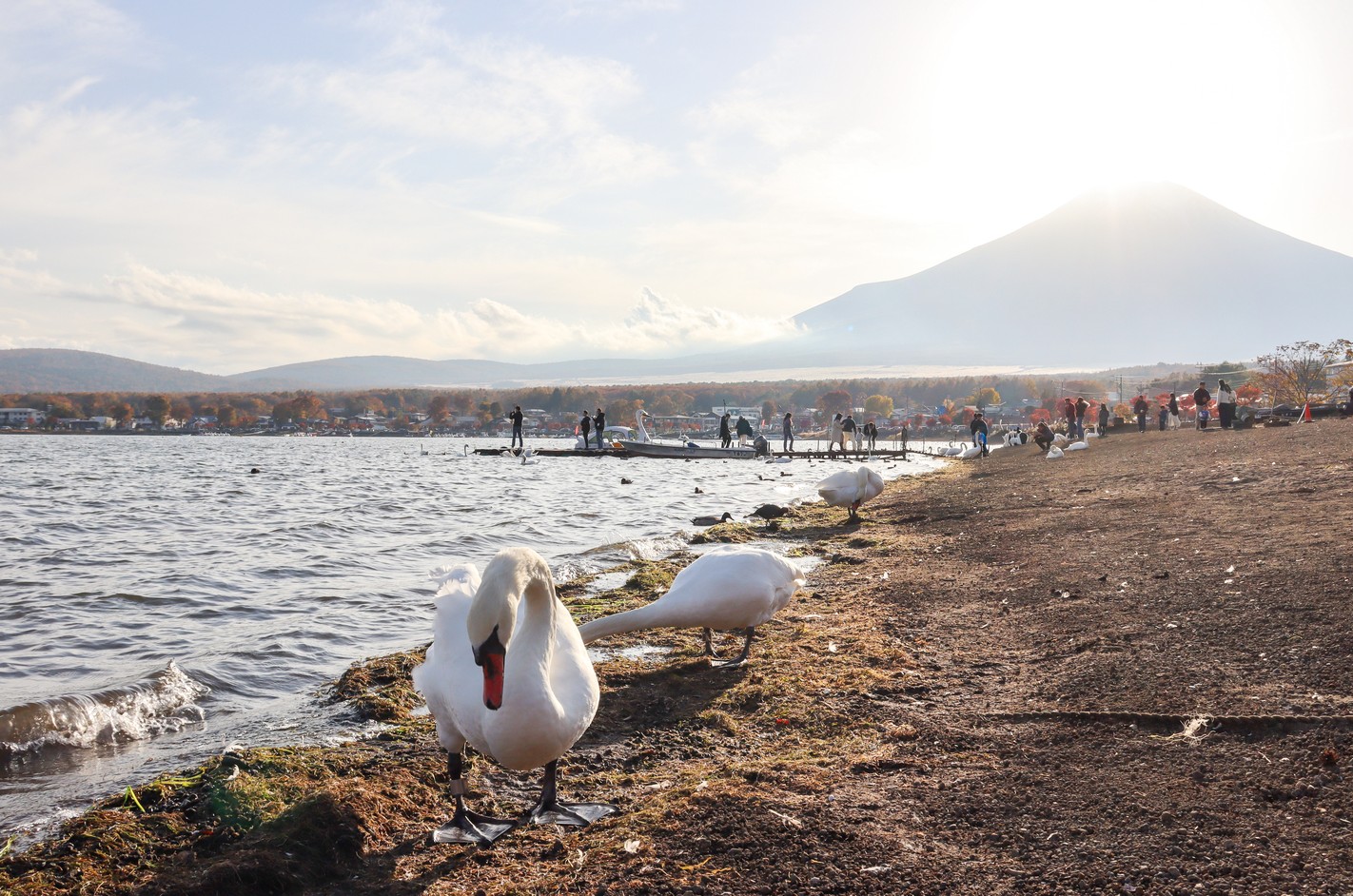 ◆山梨県山中湖村◆紅葉真っ盛りの『山中湖』で富士山と可愛らしい白鳥たちを堪能してきました♪