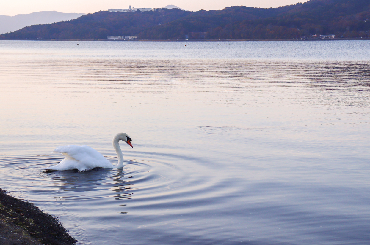 湖畔には「白鳥浜」という名前の浜がありますが、