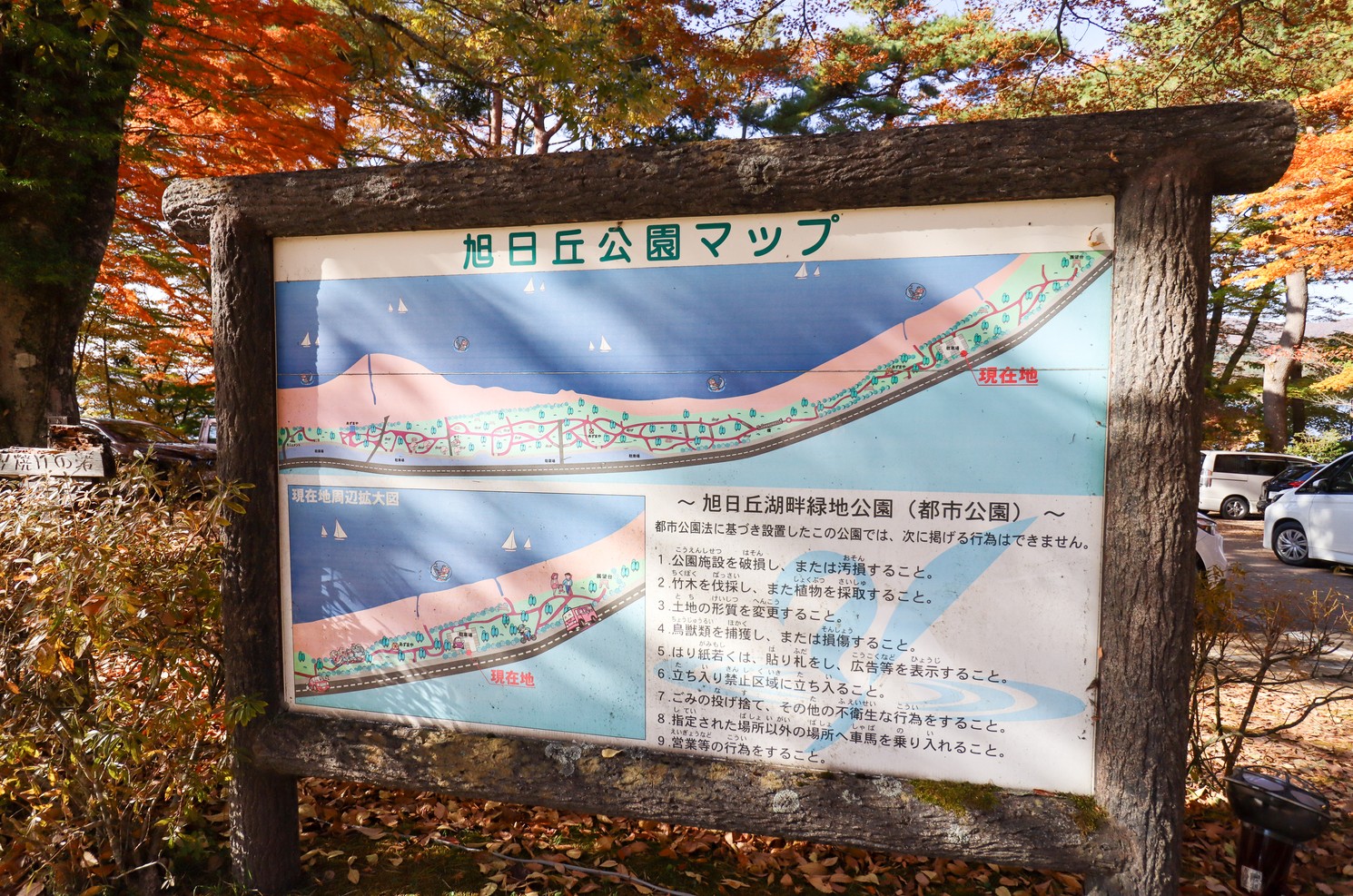 “夕焼けの渚 紅葉まつり”の会場となっている「旭日丘湖畔緑地公園」です。