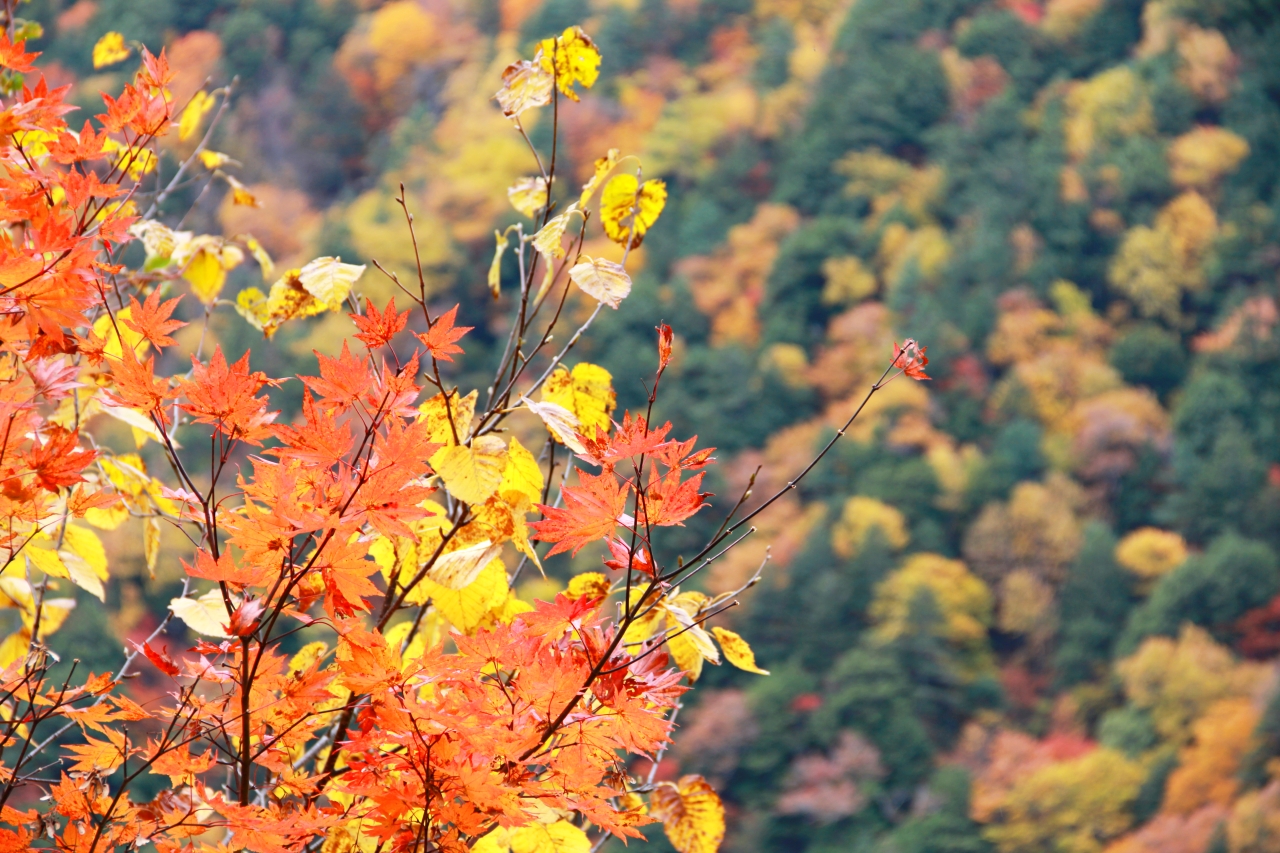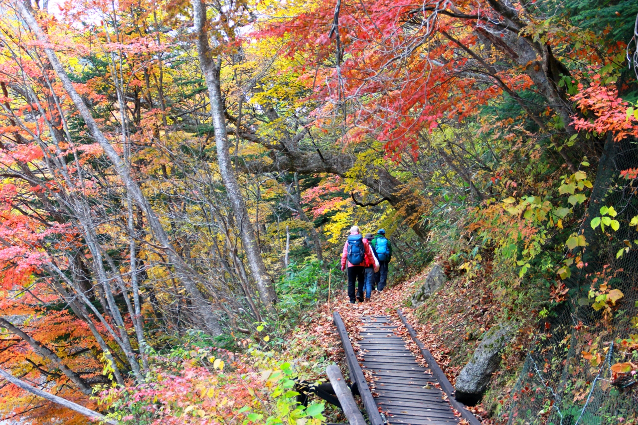 例年は、10月中旬から11月上旬にかけて、カエデやブナ、ナナカマドなどが鮮やかに色づき、谷全体が黄金色に染まります。近年は10月下旬に色づき始めることもあるので、早く行きすぎないように気をつけてくださいね。