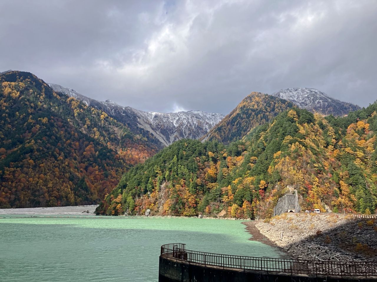 雪山と紅葉が楽しめる高瀬ダムに到着!