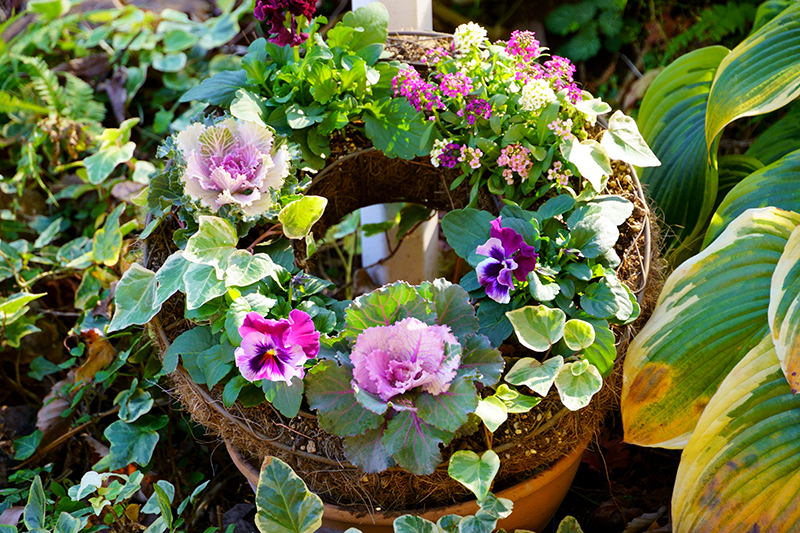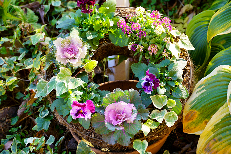 | 【使用した植物】 ●パンジー 3ポット ●葉ボタン 2ポット ●アリッサム 1ポット ●アイビー |