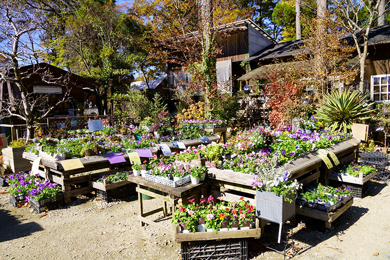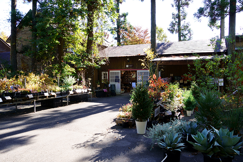 広い敷地内には那須高原の風景に溶け込んだ建物が並んでいます。ガーデン散策を楽しめるほか、苗売り場や雑貨ショップ、カフェが併設されています。