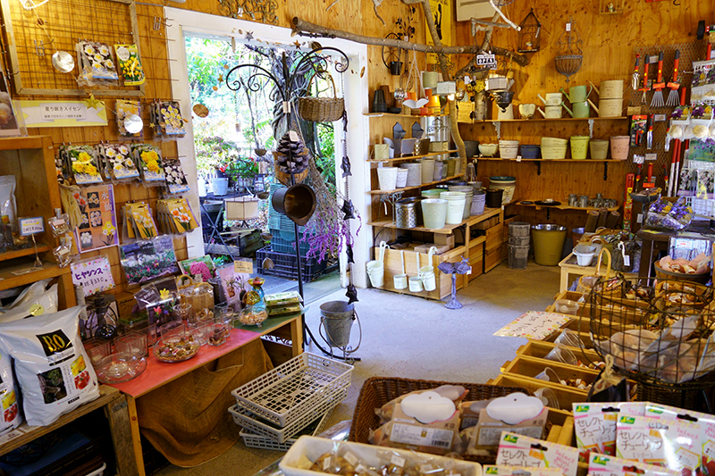 店内にはお洒落なガーデニング道具から、遊び心あるガーデングッズが並びます。