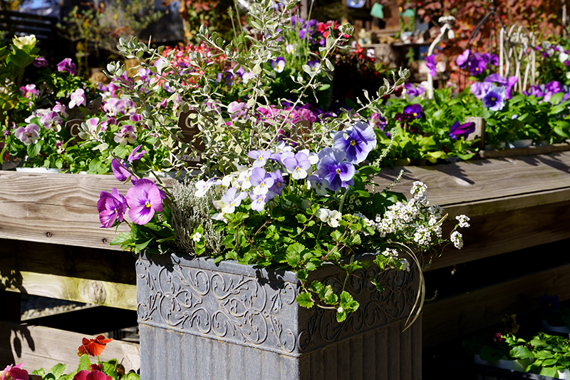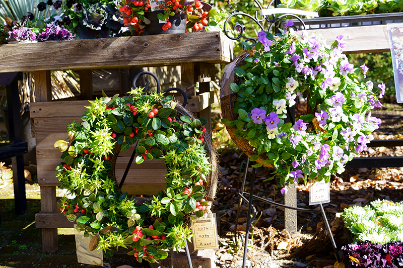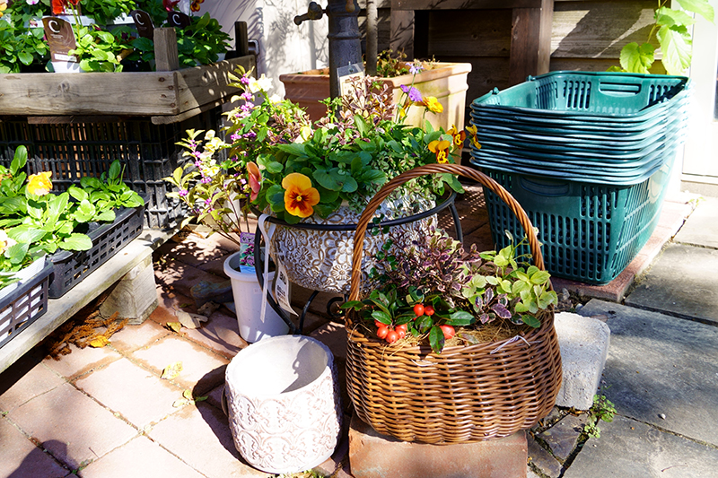 苗売り場にはオリジナルの寄せ植えも販売しています。