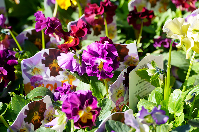 色変わりするビオラや、フリル咲きや見たことのない珍しい品種のパンジーもあります。