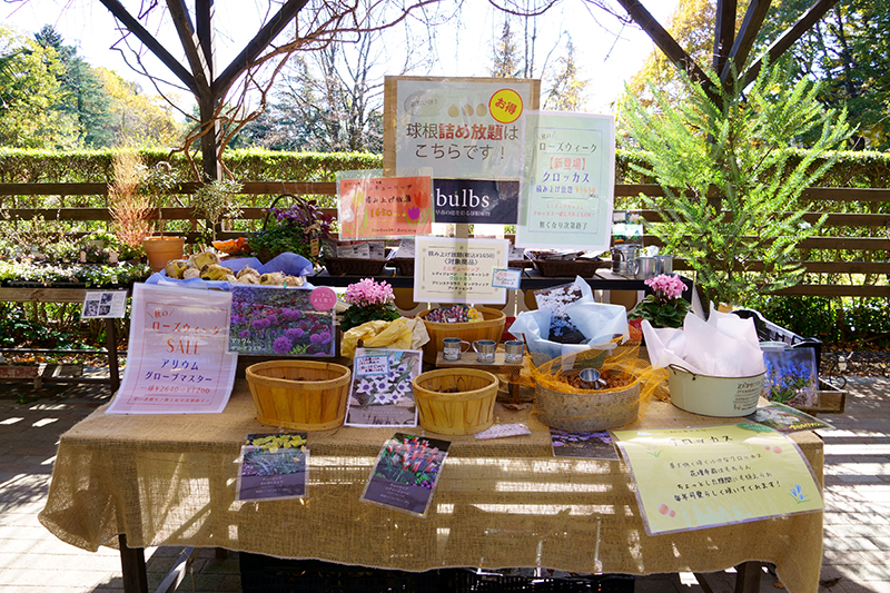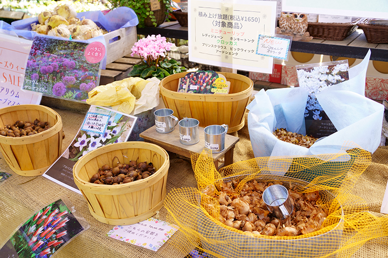 苗売り場の奥には、お得な球根詰め放題もありました。様々な球根を植えると春が待ち遠しくなりますね。