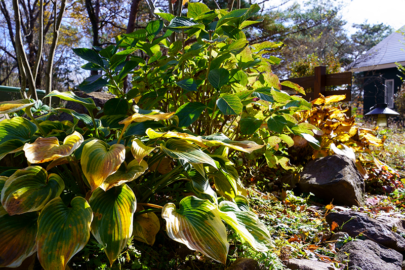 木々の紅葉が終盤になり、下草のギボウシも秋色へと変わってきました。