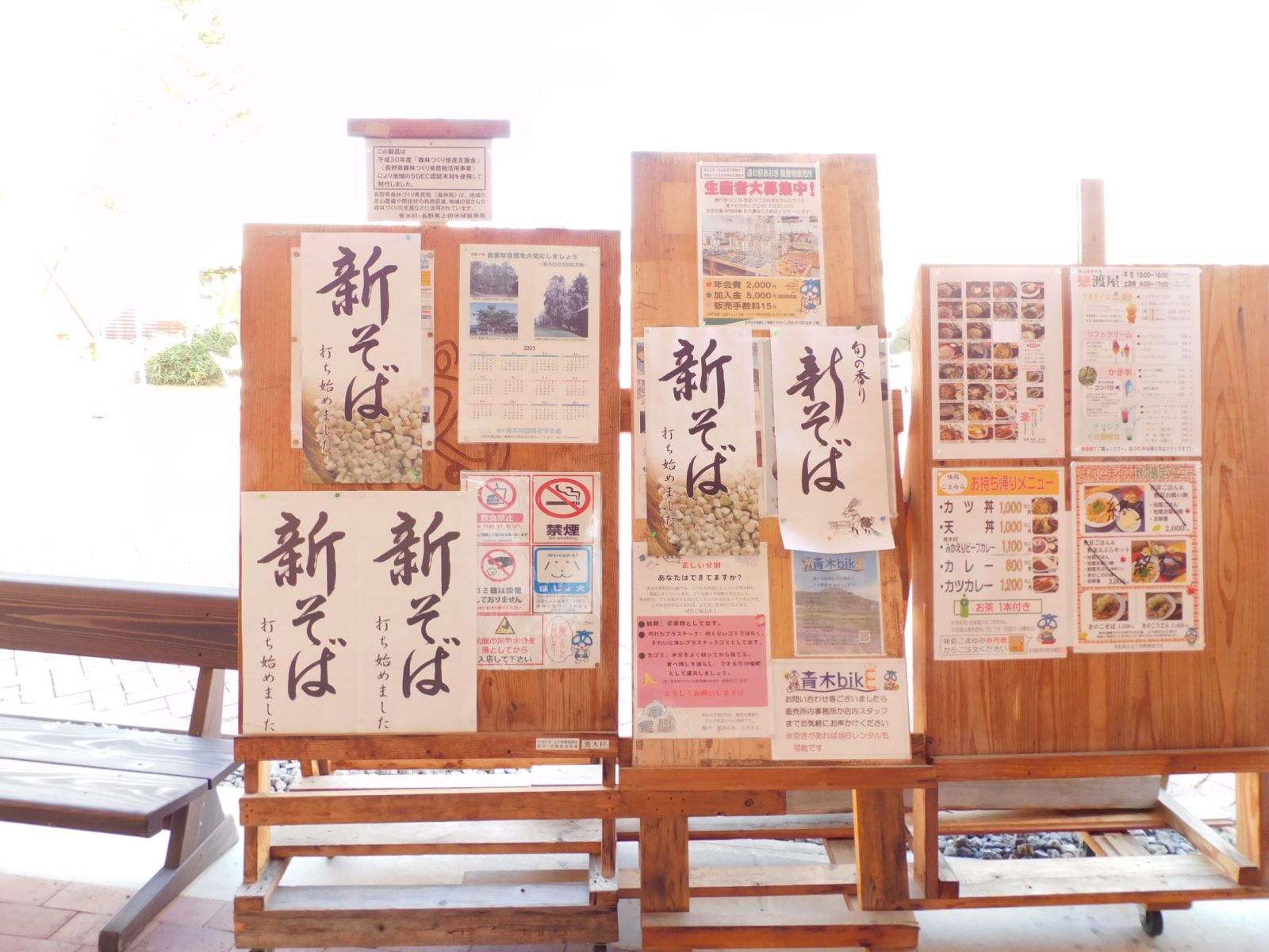 私も新そばを求めて平日のお昼、道の駅 あおき に行きました。既に駐車場には多くの車があり、多くのお客様が順番待ちの状態。