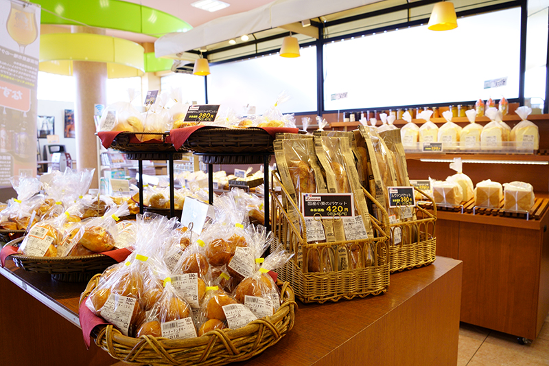 広々とした店内には近隣の農家で育てられた新鮮野菜やお肉、乳製品やお土産まで様々な商品が揃っています。