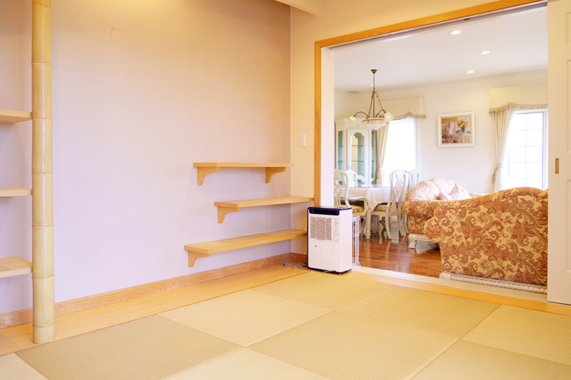仕切りをオープンにしても、リビングダイニングとバランスがとれ違和感のない和室になっています。