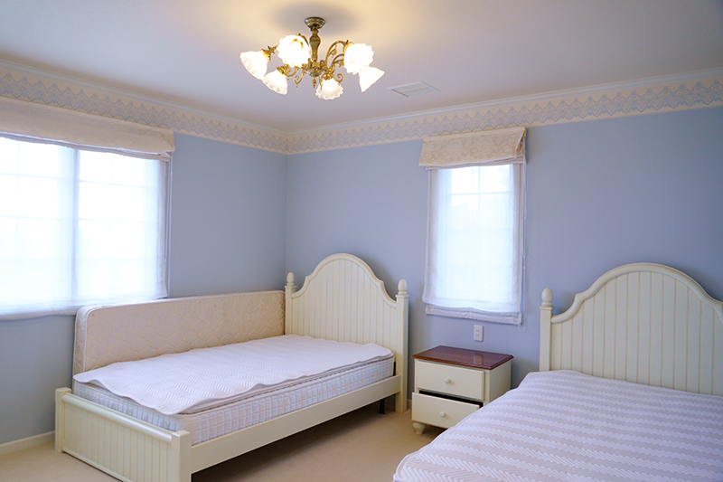 2階には淡いピンクとブルーで統一された素敵な洋室があります。