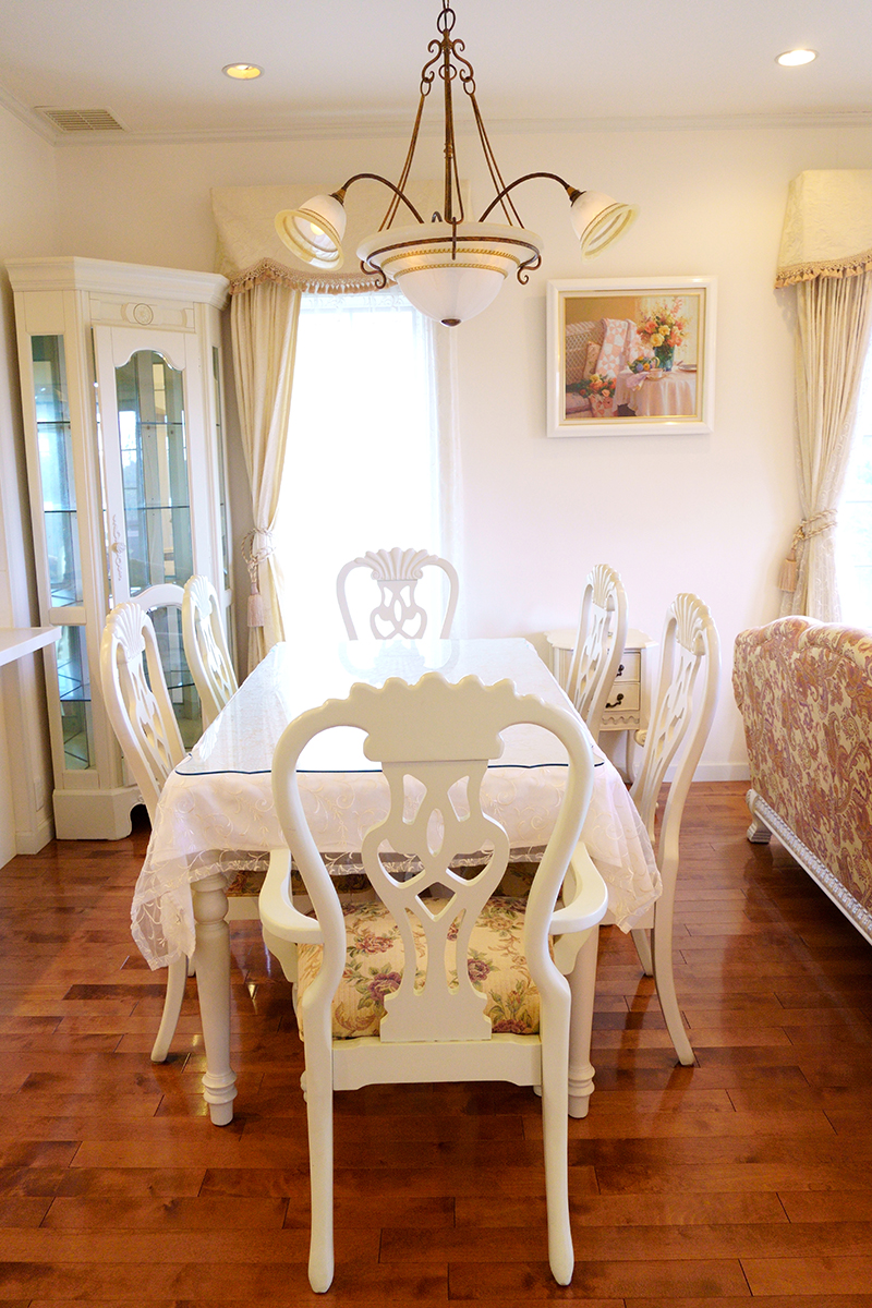 柔らかな曲線や繊細な装飾が特徴のロココ調の家具がレイアウトされ、空間に上質な雰囲気をもたらしてくれます。