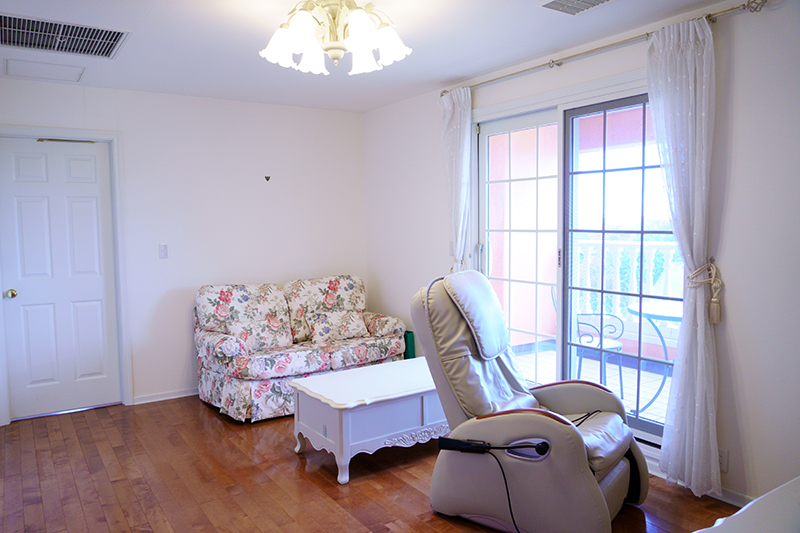 バルコニー横にはフリースペースがあり、テレビやマッサージチェアが置かれています。