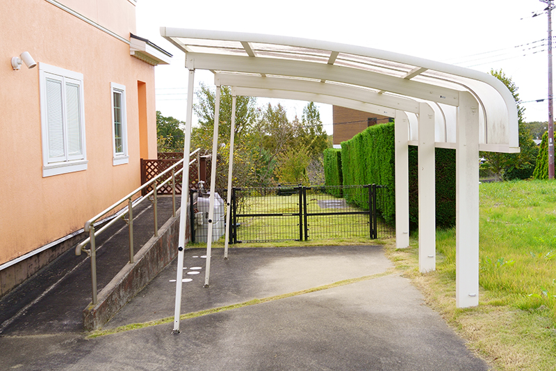 カーポート横にはスロープがあり、車椅子や歩行のサポートが必要な方でも、安全に室内へアクセスできる設計になっています。
