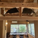 梁下の欄間にキコリが使ったとみられる大きなノコギリが大変珍しいと言うか斬新な施工に驚いています。