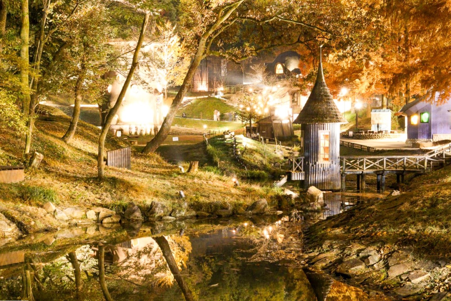 日中の雰囲気とはまた違った、おとぎの国のような公園もすてきですよ。