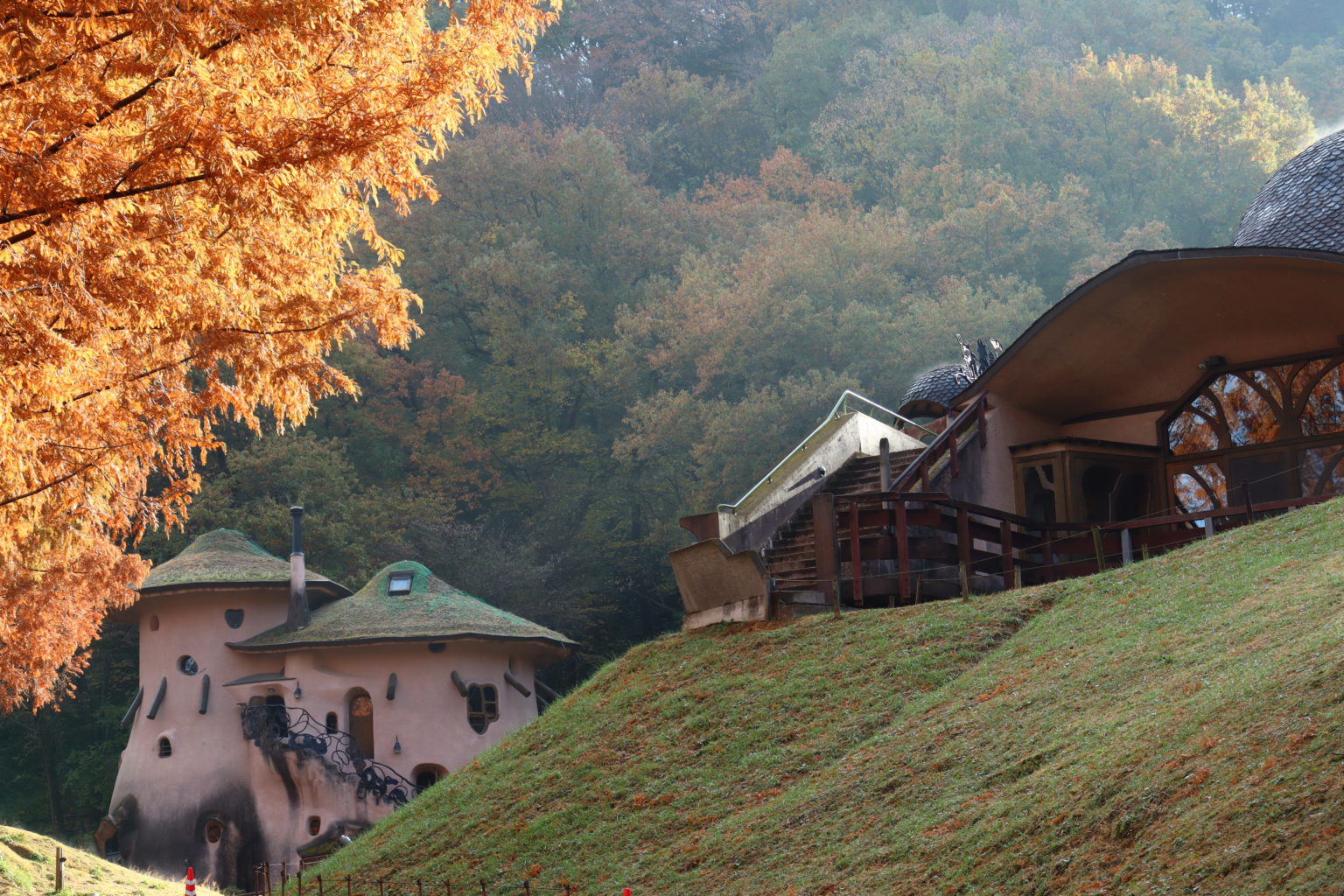 新緑の頃とは印象がガラリと変わって、カラフルに色付いたムーミン谷。