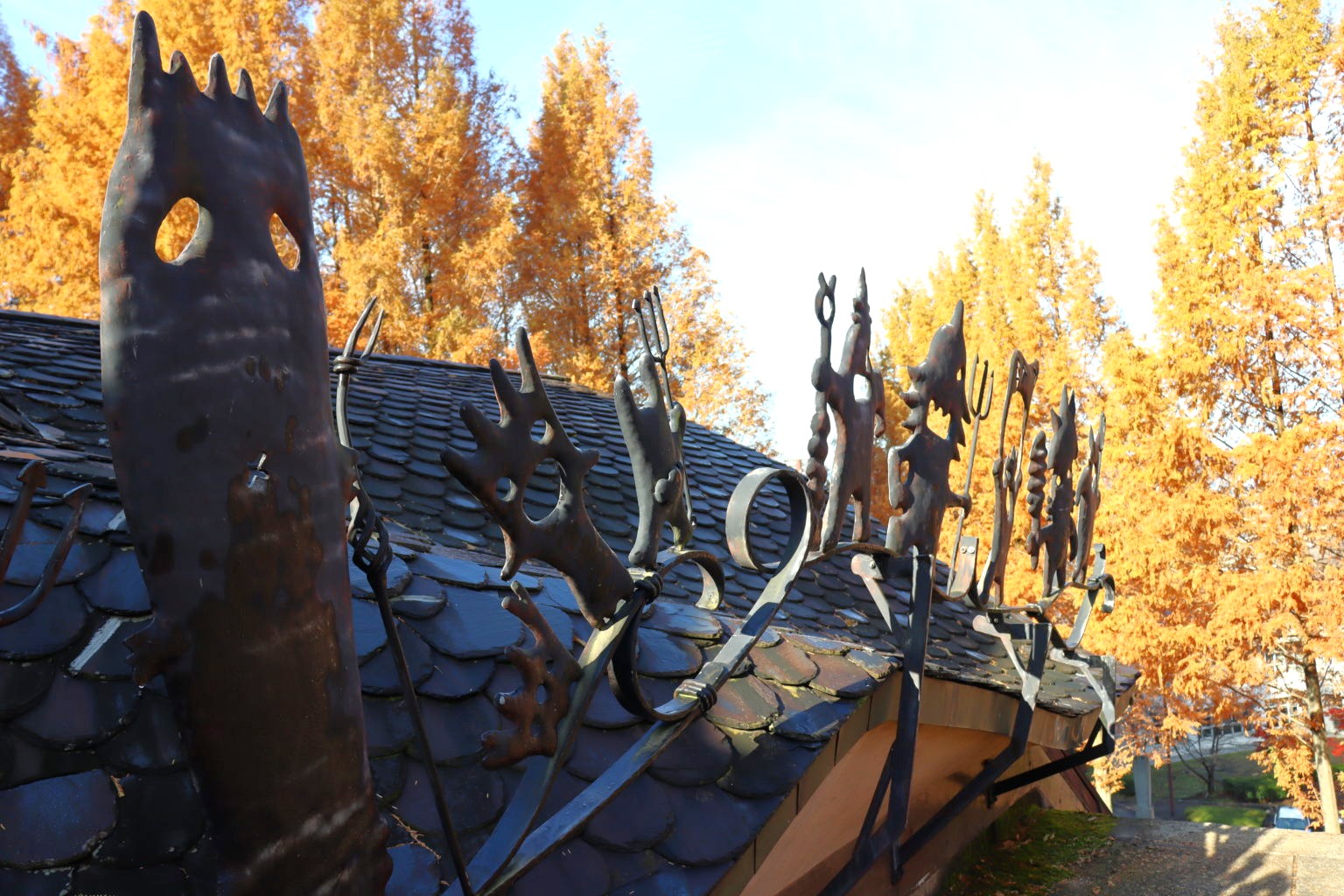 管理事務所の屋根にいる妖精たちも紅葉見物を楽しんでいる様子♪