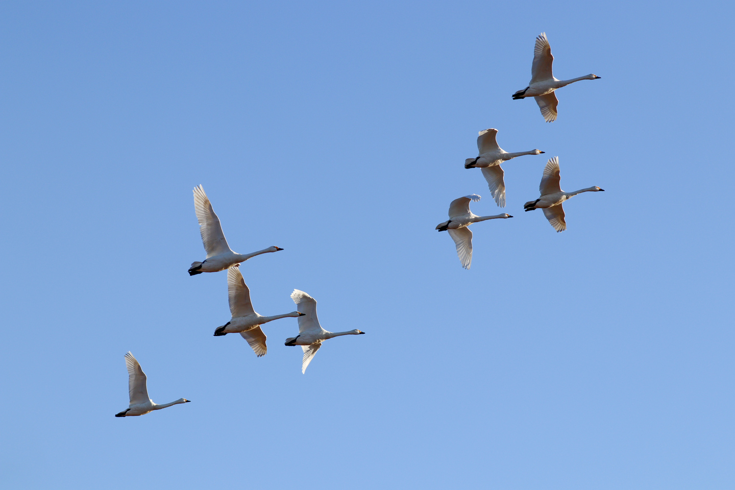 白鳥たちが餌場から帰ってくる時間帯や飛び立つタイミングなどを教えてくれたりします。