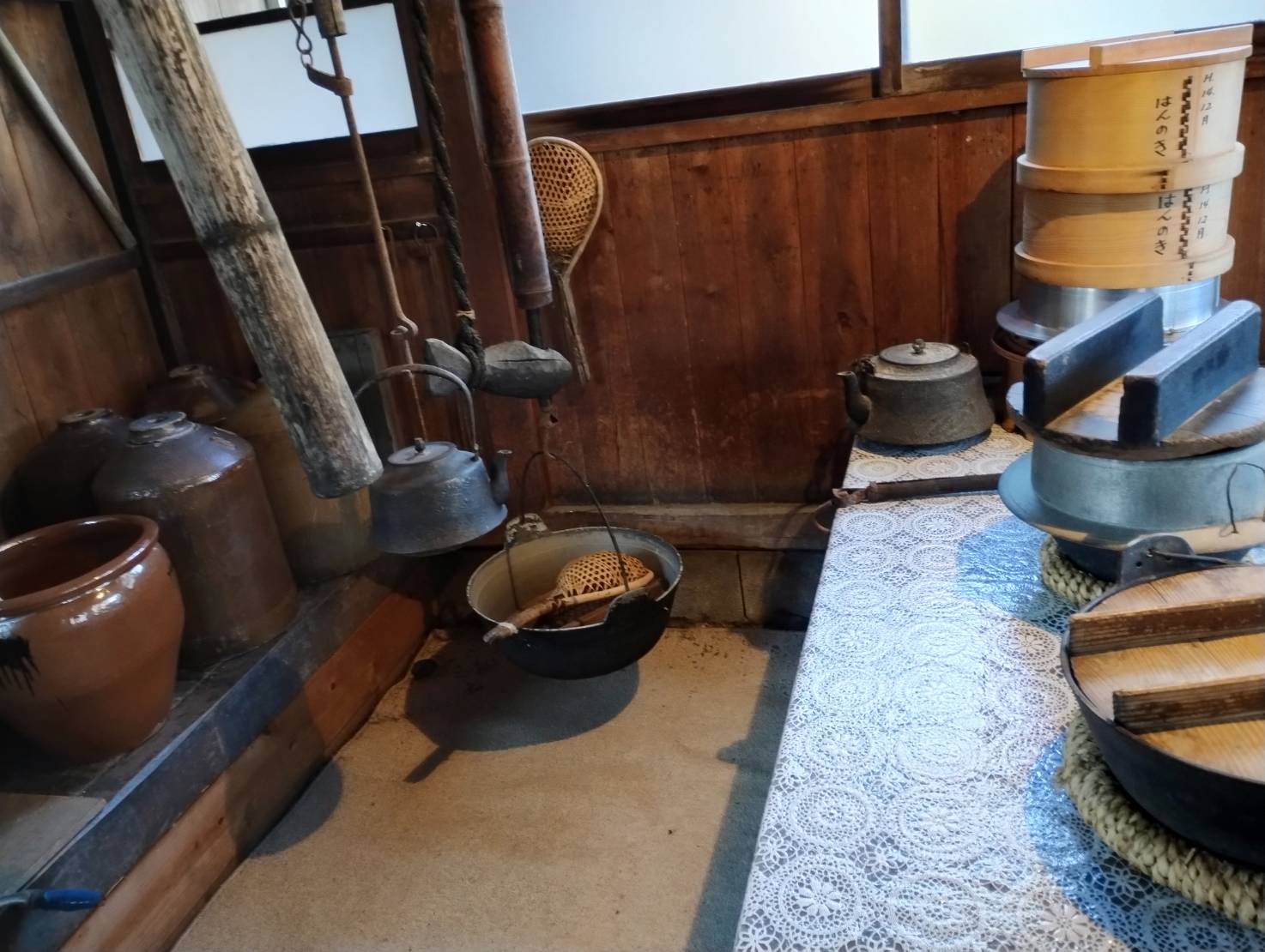 写真を撮る用のスタンドが設置されていました。多くの観光客が展望台だけで満足してその奥には行っていないようでしたが、この奥の古い建物の中にはその家で昔実際に使われていた道具類が所せましと展示されていて、その充実ぶりに驚きました。