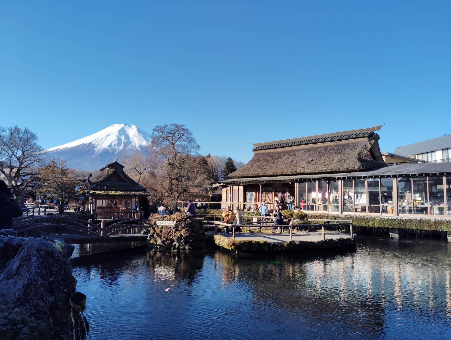 今回なるたかが忍野を訪れたのは平日の朝9時前でしたが、もうすでに国内外からの観光客がたくさんいました。真冬の平日でこの調子なら、ゴールデンウイークや夏休みの繁忙期はとんでもない数の人がいるのかもしれません。皆さん、忍野観光の中心地「中池」周辺で、写真を撮ったりお土産を選んだり楽しそうでした。