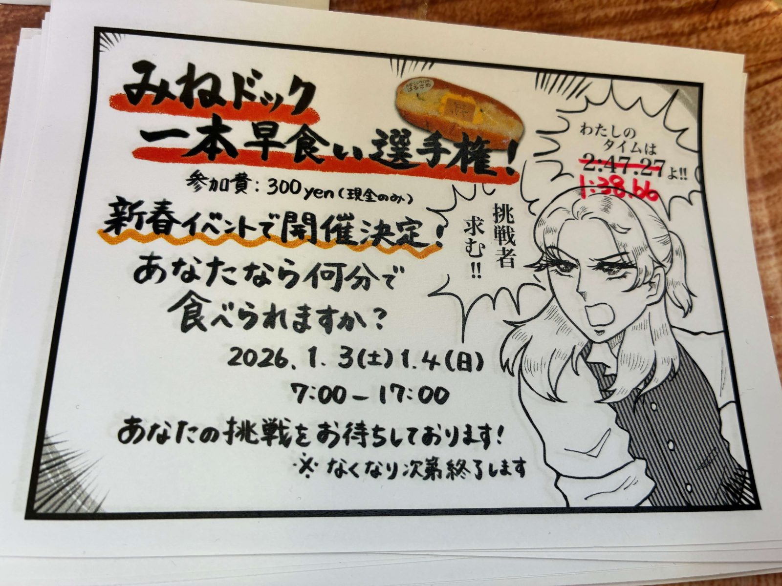 みねドックが何分で食べられるか!!参加をお待ちしております。