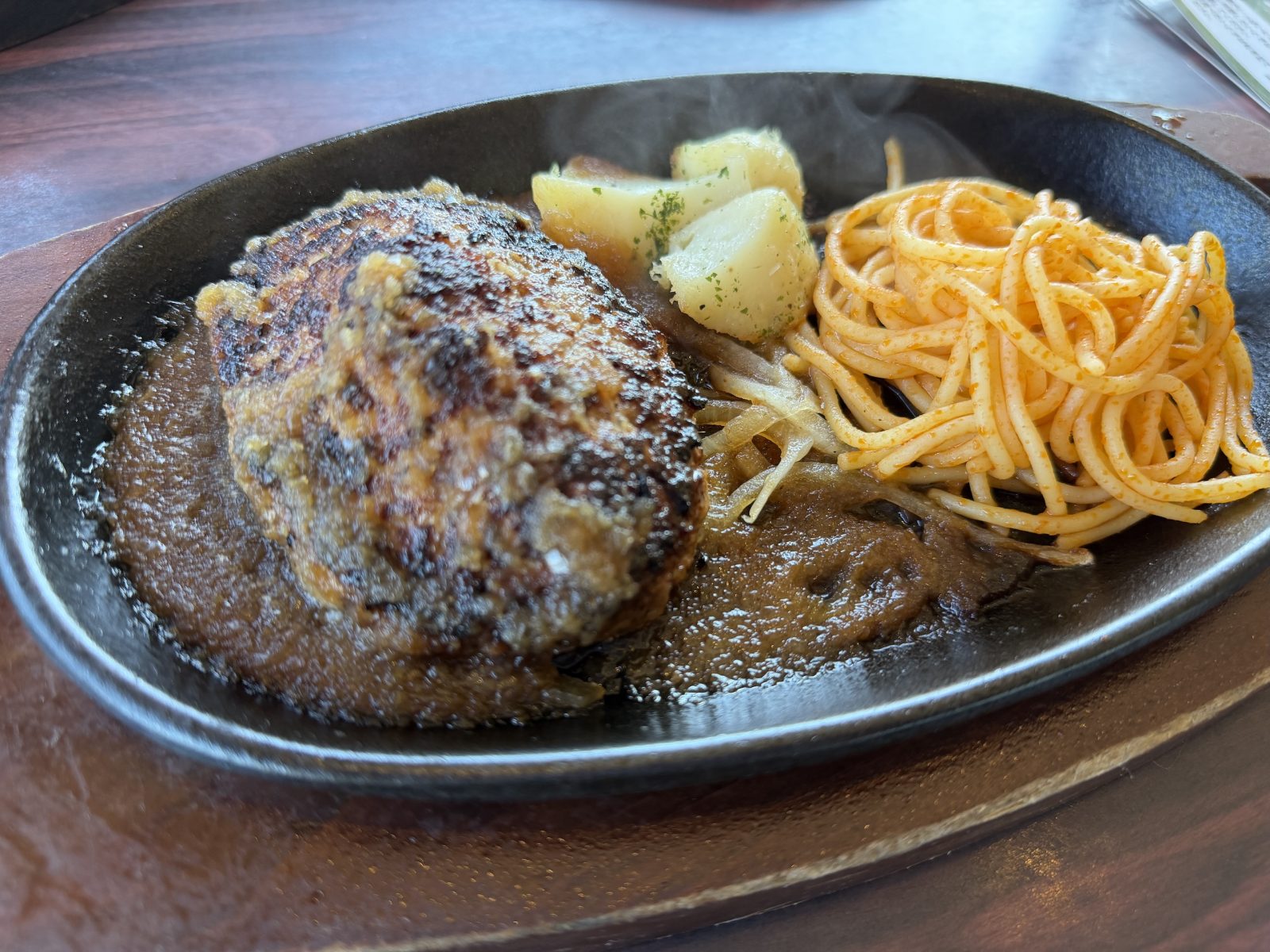 醤油ベースにすりおろし玉ねぎたっぷりのたれをパンにつけて、余さずいただきました。