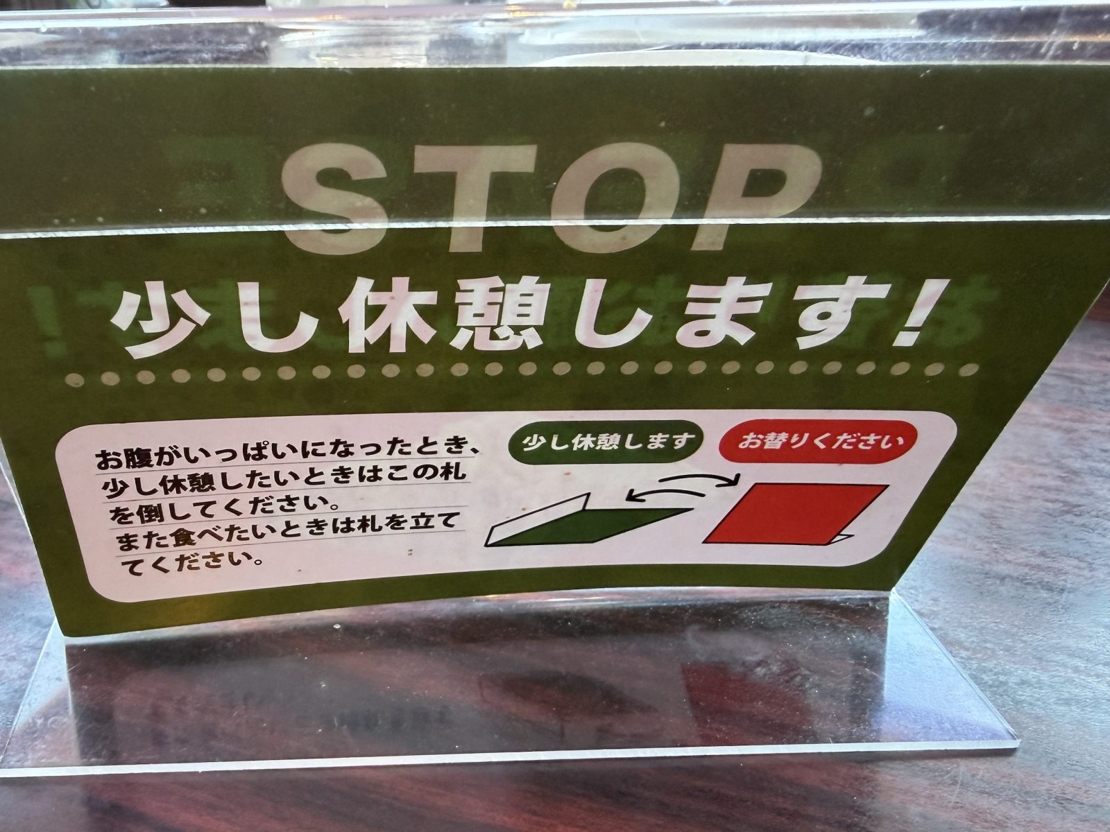 通路側に向けてこの面が出ているときは、「まだ食べたいです」という合図。