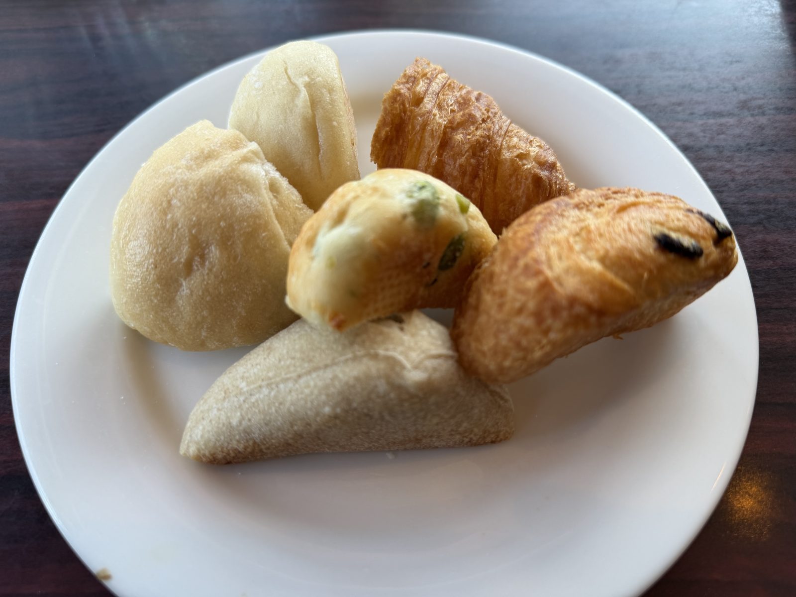 2025年12月現在、パン食べ放題はランチとディナーでシステムが異なるようでした。