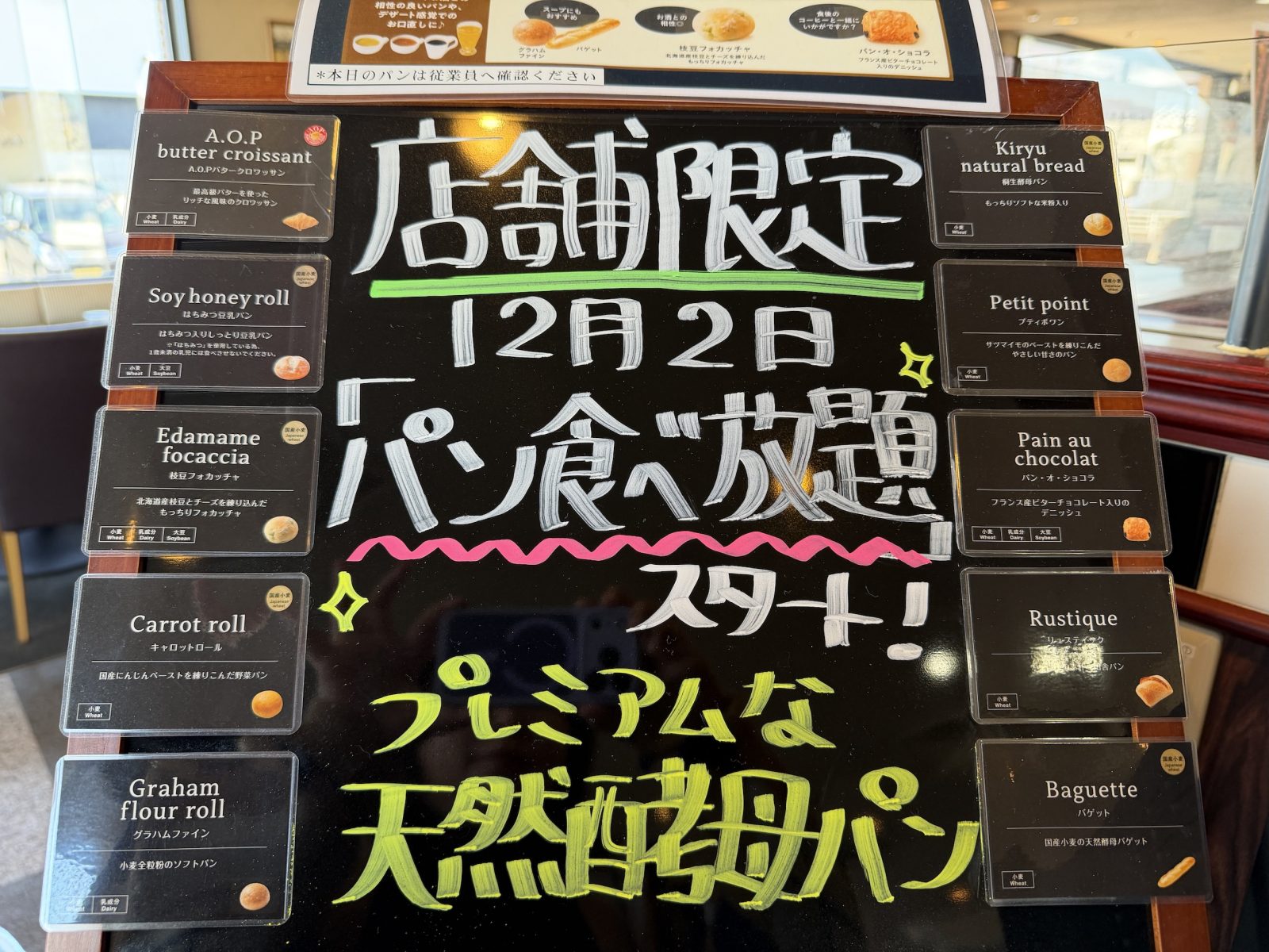 合わせて4つの店舗でパン食べ放題が実施されていることになりますね。