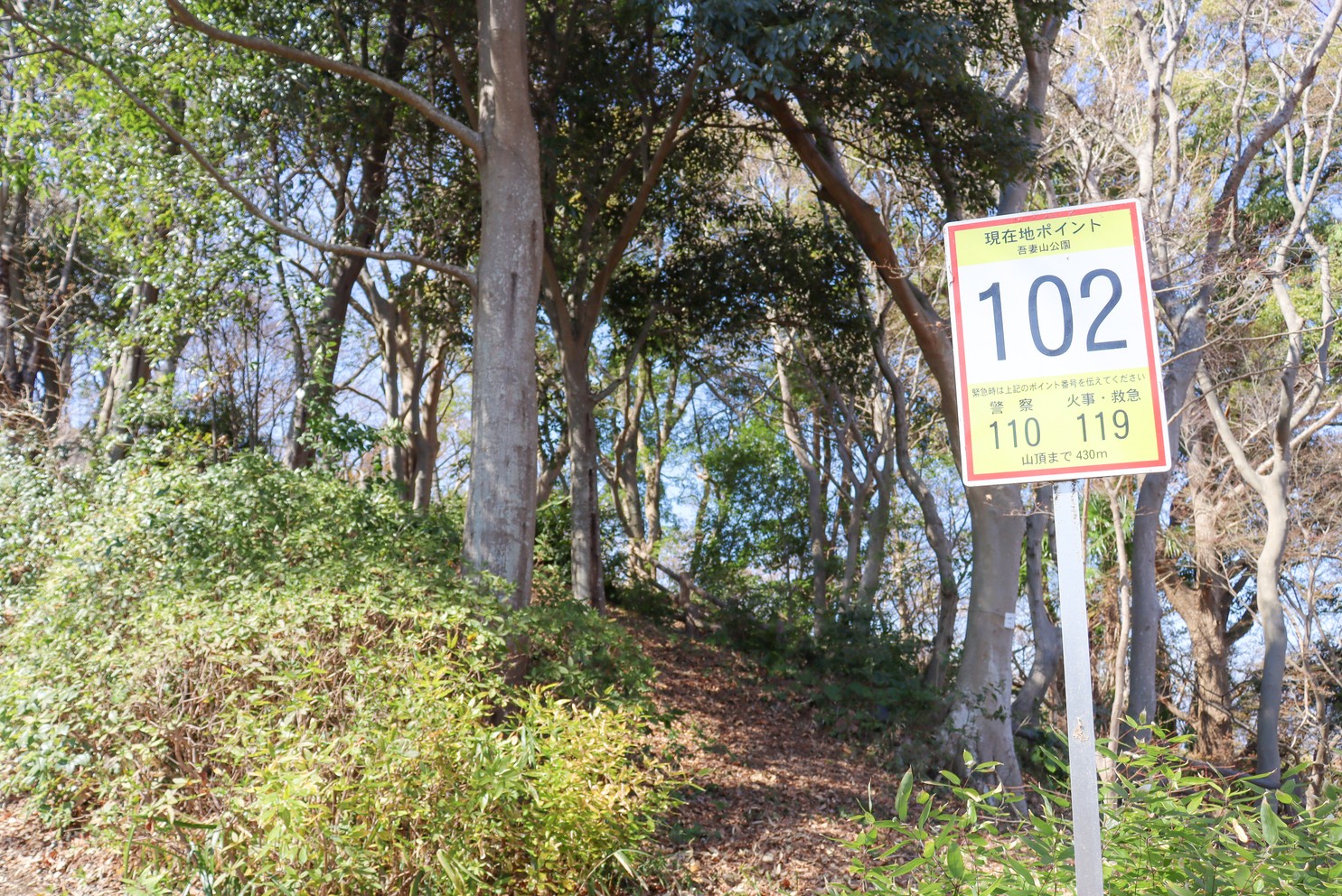吾妻山公園には他にも「梅沢口」「中里口」「釜野口」の3つの登り口があります。