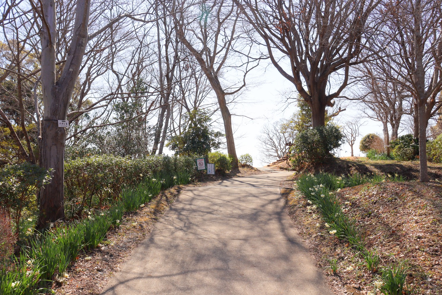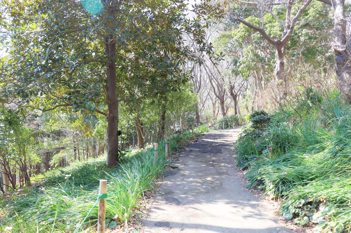 「つつじ園を通って管理事務所へ」の方はゆるやかな坂道になっています。