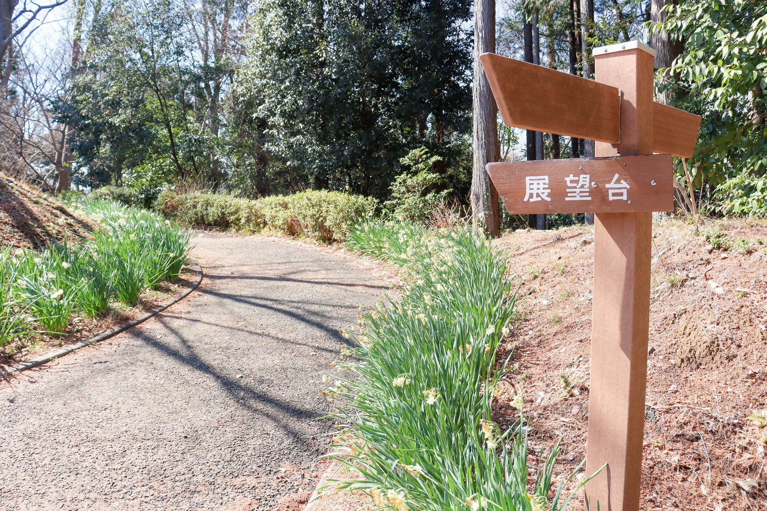 この坂をのぼれば展望台のある芝生広場に出るはず!