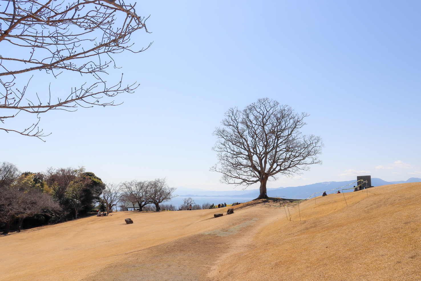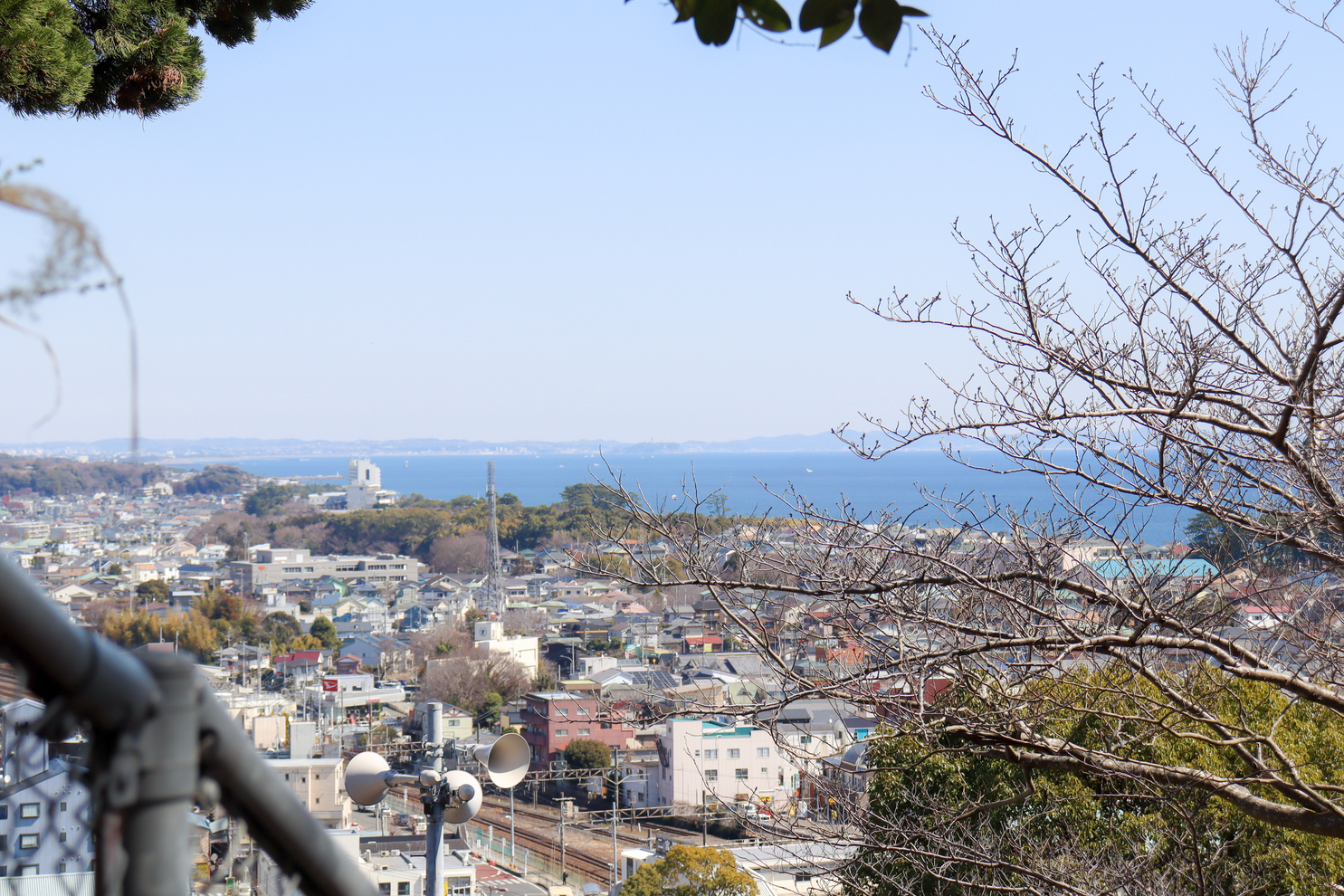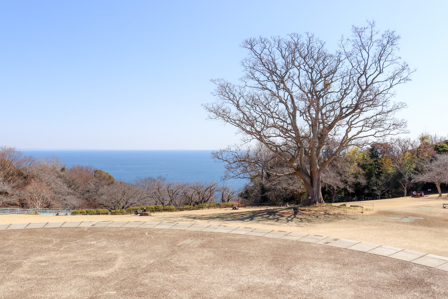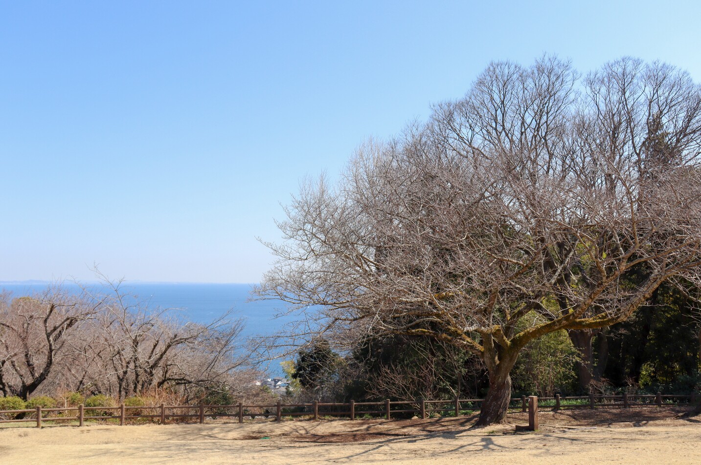 吾妻山公園のシンボルツリー「エノキ(榎)」と海のコラボ。