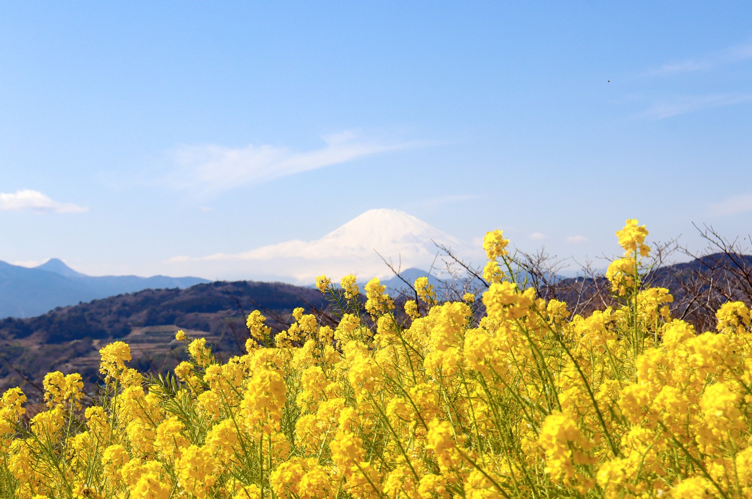 富士山と菜の花の競演を見て、一足早い“春”を感じて来ました。