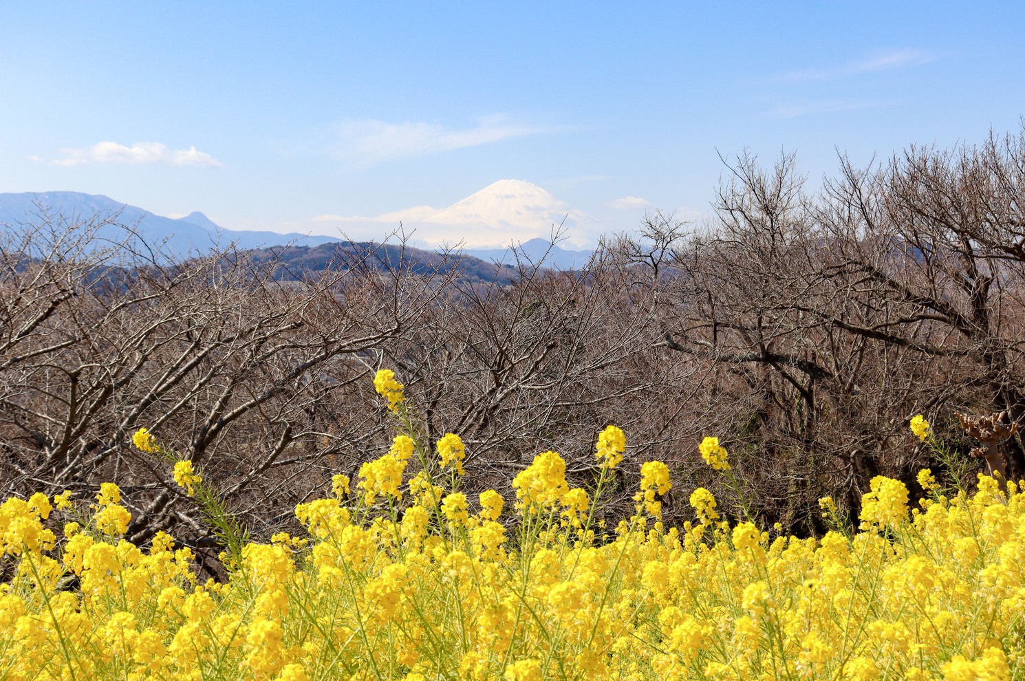 満開の菜の花と富士山の絶景を見られる公園を訪ねてきました。
