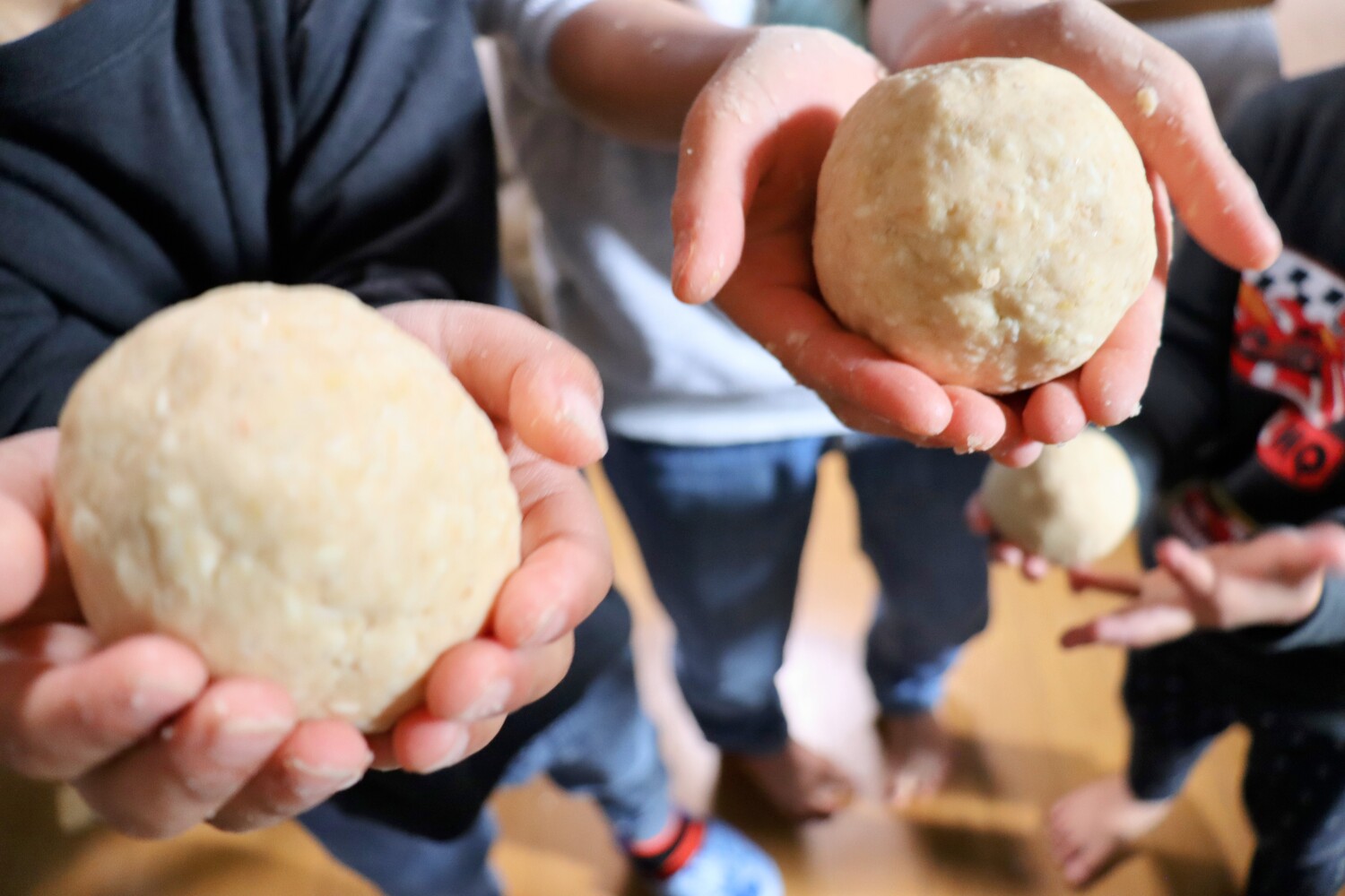 大豆と塩麹がじゅうぶんに混ざったら「味噌玉」を作ります。