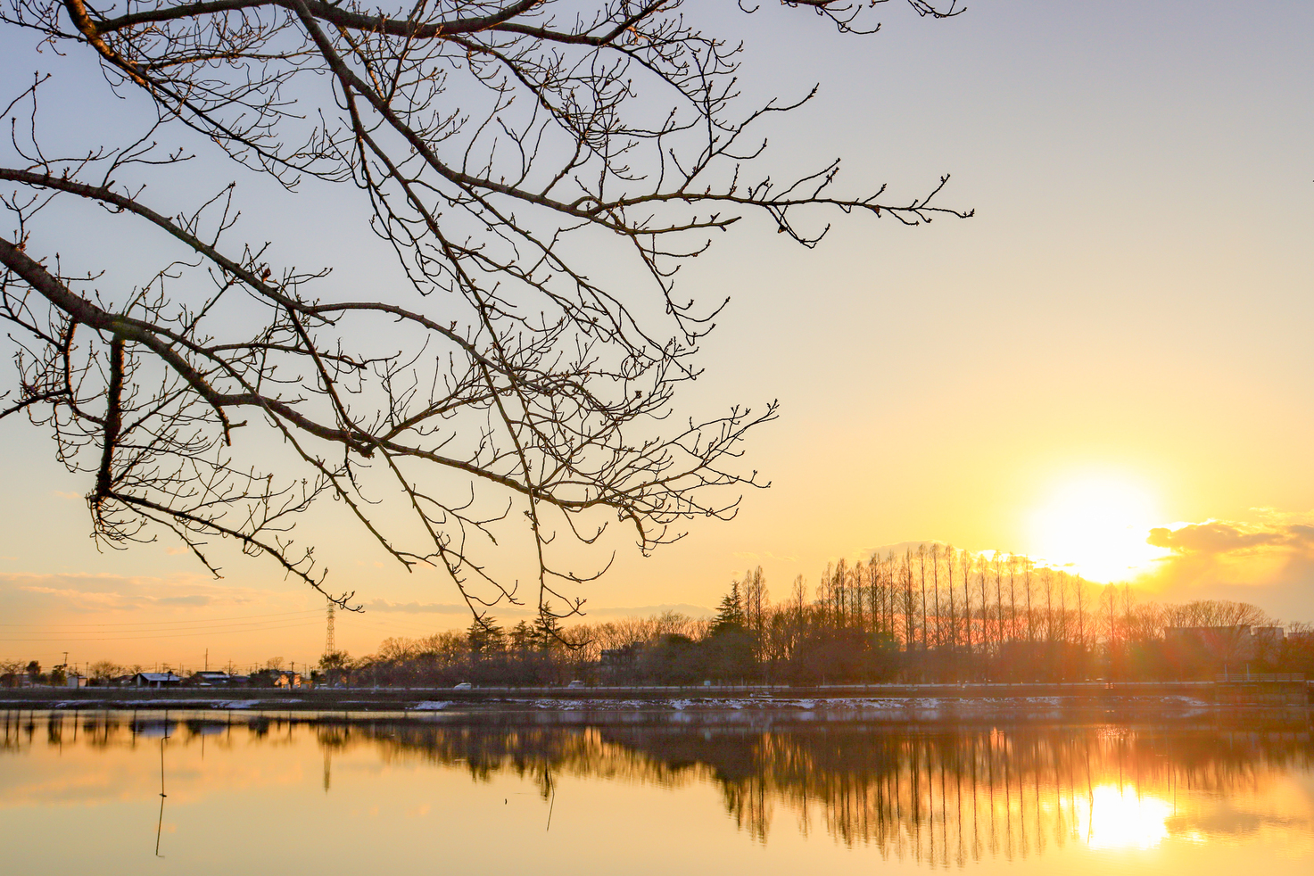 四季折々の自然を楽しめる伊佐沼は、日の出や夕陽の時間帯も美しく、