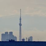 房総半島の蜃気楼は、富山県・魚津ほど明瞭に現れることはありませんが、対岸の高層ビル群や大型の船舶が蜃気楼で歪む光景は特徴的です。