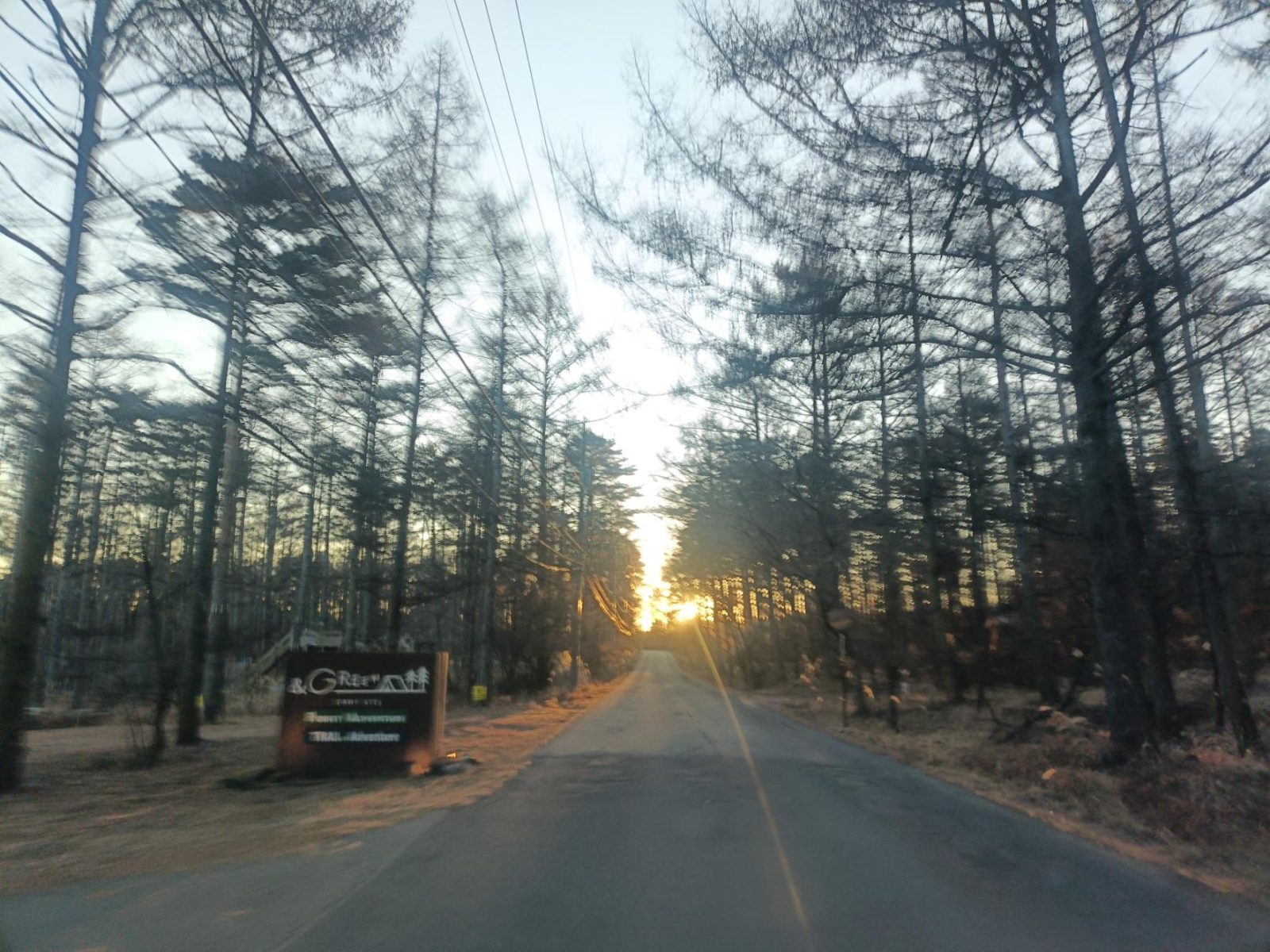 広い道に出ると正面から初日の出が迎えてくれました。天気が雲一つない快晴で空気が澄んでいたこともあって、昇ってきたお日様の光がとてもまぶしかったです。