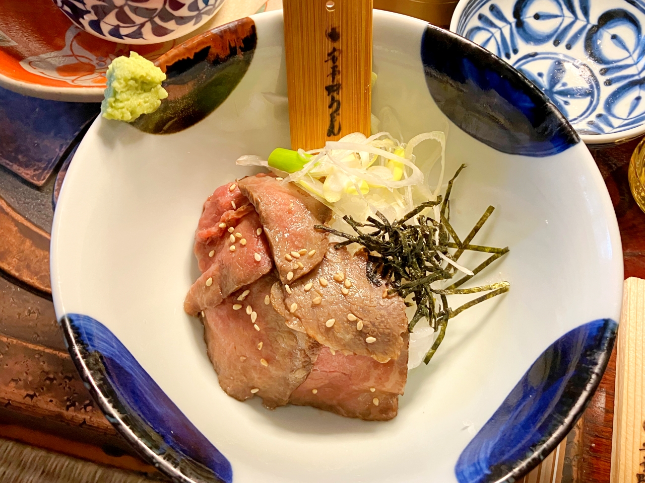 和牛ローストビーフ丼は、手作りのゆずポン酢をかけていただきます。ローストビーフは口の中でスッとなくなる柔らかさ!しかも、一緒に食べるごはんがおいしいのです。